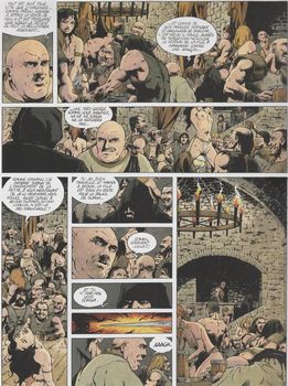 remarques: | dans l'ahurissante ville de Gangarah, située dans la partie septentrionale de Merrazha l'étincelante, le Grand Tentrar Kamra a battu le rappel des troupes, à Shalizar, le Grand Tentrar Sorga a également levé une expédition, pourquoi une telle agitation chez les puissants de ce monde ? serait-ce l'enlèvement d'une simple femme, nommée Vell'a, qui bouleverse toute la diplomatie de cette région ? il semblerait, en effet, que cette belle et farouche jeune fille soit la clé du problème, enlevée par des pirates, revendue à un marchand d'esclaves, achetée par un chef nomade, elle est l'objet de bien des convoitises pour une raison encore inconnue, Vell'a est formée pour devenir une "araya" = esclave de haute qualité sachant manier les armes, les lettres, le poison et surtout la séduction et ceci pour pouvoir accéder au premier croyant entretemps, le grand tentrar Kamra lance ses mercenaires à la recherche de Vell'a tandis que Vell'a est à nouveau enlevée, cette fois par la garde du tentrar Sorga de Shalizar >> p. 35 les pistards de Sorga Vell'a apprend qu'elle est une princesse, fille du tentrar Kamra, et qu'elle est désirée par les trois initiés et Vell'a repart pour de nouveaux voyages et de nouveaux enlèvements avec Poison, une jeune esclave devenue son amie >>> les 1001 voyages et enlèvements de Vella qui commencent à bien faire mais avec un graphisme respectable surtout pour le jeu des couleurs |