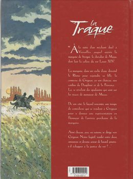remarques: | la série se nomme la Traque avec toutefois un seul tome de paru: Grignan Lacaf dessinateur spécialisé dans l'histoire avec entre autres les séries: les patriotes, le bal des chimères et une série polar: macadam à la suite d'un méchant duel à Versailles, auquel assiste la marquise de Sévigné, le chevalier de Muzac doit fuir la colère du roi Louis XIV la marquise dans un coche d'eau descend le Rhône pour rejoindre sa fille, la comtesse de Grignan en son château, aux confins du Dauphiné et de la Provence là, se révèlent des spadassins qui sont sur les traces du chevalier de Muzac, de son côté, le fuyard rencontre une troupe de comédiens qui se rendent à Grignan pour y donner une représentation en l'honneur de l'arrivée prochaine de la marquise et lors d'un duel, le chevalier sera grièvement blessé au visage >>> p. 22 le nez postiche confectionné sur mesure pour le chevalier >>> p. 24 le menu d'un soûper au château de Grignan: - petits pâtés chauds cuits au vin, - salade de truffes du tricastin à l'huile d'olive, citron et gros sel, - asperges fraîches, - escargots petits-gris dormeurs à la poêle et en persillade, - lièvre "à ma royale" = un mâle tué du jour avec un lièvre femelle haché gros et lardé, - des filets de canard muet avec la peau, le foie, le gésier très cuits assortis de navets confits - fromage frais de chèvre avec confiture de prunes sauvages - "rocher de Grignan" au parfum d'orange confite - drame, littérature, comédie, amour, gastronomie composent cet album au scénario tout de même un peu relâché tout comme le graphisme, bref un album un peu détraqué! |