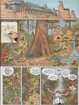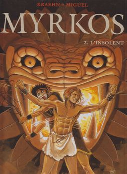 remarques: | la suite des aventures de Myrkos, l'artiste ornemaniste Myrkos a décidément l'art de se compliquer la vie, il est certes l’élève le plus doué de la Scola Impériale, mais sa volonté de bousculer l'odre et les règles établies ne lui attire que des ennuis, ses relations avec son ami Dhellou vont en pâtir et le prêtre Carcantix ne cherche plus à cacher son envie de se débarrasser du jeune homme, malgré cela ce dernier progresse à grands pas dans la maîtrise de la perspective, malheureusement, ses activités clandestines de dessinateur vont lui valoir d’être considéré comme un paria cette fois Myrkos et son ami Dhellou sont en concurrence pour un projet d'ornementage sur un temple privé qui appartient au riche Othon, un gouverneur d'Anétha >> p. 9 Myrkos découvre le secret du dessin en profondeur >> p. 11 la richesse de la maison d'Othon >> p. 16 les démêlés de Myrkos avec la jeune Kalcathe, fille d'Othon >> p. 32 le seigneur Othon dans toute sa splendeur Myrkos est toujours accompagné de sa chouette et pourchassé par Pyrtax qui réussira à s'emparer de lui et les insolences de Myrkos l'amèneront une première fois à être puni de flagellation, puis d'être arrêté et condamné à une peine pas encore connue ce deuxième tome situe dans la continuité du premier,la surprise en moins, c’est toujours assez intéressant de voir les progrès de Myrkos dans sa découverte de la perspective, d’apprécier sa farouche volonté de lutter contre les règles établies depuis des années, on se dit que tout au long de l’histoire humaine, il a fallu ce type d’hommes pour faire évoluer les choses, pourtant ce deuxième tome est un peu moins passionnant, le jeune homme en est presque agaçant à se trouver à chaque fois dans des situations délicates on souhaiterait que ces petits ennuis personnels soient moins mis en valeur pour aller plus vite à l’essentiel: découvrir jusqu’où ses recherches vont le conduire toutefois le scénario tout comme le graphisme enregistre quelque progrès |