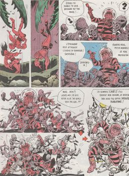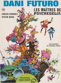 remarques: | Dani et Iris s'amusaient bien en vacances... pourtant ils doivent repartir dans l'espace pour une nouvelle mission: enquêter sur les warliks, d'étranges baleines de l'espace en voie de disparition >> p. 11 un banc de warliks nos amis constatent que ces baleines sont décimées par des baleiniers de l'espace qui seront eux-mêmes pourchassés par nos amis qui ont pris à leur service le capitaine Stentor dans sa fusée stellaire, vieille mais solide toutefois l'une des baleines, blessée par les baleiniers, heurte leur fusée les obligeant à un atterrissage de fortune sur une étrange planète, une planète psychédélique qui provoque des visions de tout genre >> p. 18/19 l'oiseau-bonheur et l'oiseau-malheur capturés par un savant fou (le maître de Psychedelia) qui veut s'emparer de leurs cerveaux, Dani et Futuro seront délivrés par le capitaine Stentor qui a réussi à s'échapper de l'emprise de la planète grâce à son ancienne mais toujours encore indéfectible fusée >> un épisode à nouveau loufoque, quelque peu insipide mais assez sympathique, où les plus écolos des aventuriers de l'espace sont confrontés à une civilisation humanoïde qui a trouvé le moyen d'asservir la population locale grâce à une drogue euphorisante puissante; c'est un peu notre monde qui est décrit là, et si le chef des Thorgs, les oppresseurs, porte une petite moustache et une chemise militaire brune, ce n'est pas un hasard, même si c'est un peu grossier le tout se lit assez bien, mais vers la fin tout s'accélère, et ça devient un peu confus, comme souvent dans cette série |