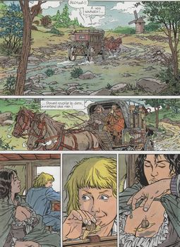 remarques: | au coeur de la Vendée, Georges Cadoudal et Pontmarcy reprennent espoir, les émigrés s'apprêtent à rejoindre la France armés et équipés par les anglais Timon et ses amis font eux aussi route vers les révoltés avec le désir de faire triompher la raison face au fanatisme des extrémistes, en ce mois de juin 1795, le jeune Louis-Charles de Normandie, dit Louis XVII, s'étiole, enfermé dans la prison du Temple, le P'tit Roi croit encore en une improbable évasion qui lui permettrait de retrouver les siens, le messager de Londres apporte l'annonce de renforts à Cadoudal, chef royaliste du Morbihan >> p. 9 escargot sur gorge ouverte alors que la malle-poste transporte le P'tit Louis (qui serait Louis XVII) mais les bleus sont déjà sur leurs traces et William, fils de Timon est blessé et capturé >> p. 22 l'évasion spectaculaire de William en ces jours de juin 1795 allait se jouer le sort de la jeune République >> p. 31 la dégustation du P'tit roi: "cette mangeaille sent aussi fort que la merde mais j'ai trop faim" toutefois les royalistes ne sont plus sûrs si le jeune enfant qui est avec eux soit vraiment le véritable Louis XVII fin juin 1795 près de St-Michel, débarquement sans suite des anglais et des royalistes et à la confirmation de la mort du vrai XVII, empoisonné au Temple, tous les espoirs s'envolent et on se rend compte que le P'tit Louis présent chez les royalistes était en fait un faux Louis XVII >> ce dernier album ne vaut pas grand chose, scénario et graphisme bâclés à la sauvette, cette série ne restera pas donc pas comme un évènement à coté duquel les lecteurs seraient passés il est vrai que d'autres albums méritent plus l'attention des lecteurs information Louis-Charles de France (27 mars 1785-8 juin 1795), second fils de Louis XVI et de Marie-Antoinette, duc de Normandie, dauphin de France à partir de 1789, puis prince royal de 1791 à 1792, après la mort de son père, en 1793, et suivant l’ordre dynastique, il est reconnu comme titulaire de la couronne de France sous le nom de Louis XVII par les puissances coalisées et par son oncle, futur Louis XVIII, alors qu'il est détenu à la prison du Temple, il meurt en captivité en 1795, à l’âge de dix ans, sans avoir jamais régné aux yeux des royalistes, le dauphin Louis-Charles succède à son père, guillotiné, en vertu du principe selon lequel la continuité dynastique est automatique en France (un nouveau roi succède au roi précédent dès l'instant de la mort de ce dernier) sous le nom de Louis XVII, il est reconnu comme tel par le comte de Provence, frère cadet de Louis XVI et futur Louis XVIII, alors émigré à Hamm, près de Dortmund, en Westphalie les Vendéens et les Chouans, mais aussi de fidèles royalistes dans d'autres provinces, se battirent en son nom, leurs étendards portaient l'inscription: "vive Louis XVII" Louis-Charles est confié à sa mère au troisième étage du Temple, jusqu'au 3.7.1793, les captifs bénéficient à cette époque d'un confort incontestable (baignoire, garde-robe, nourriture abondante), plusieurs tentatives d'évasion sont fomentées par des royalistes afin de délivrer Marie-Antoinette et ses enfants par arrêté du Comité de salut public du 1er juillet 1793, Louis est enlevé à sa mère et mis sous la garde du cordonnier Antoine Simon ( "l'instituteur" désigné, qui sait pourtant à peine écrire) et de sa femme, qui résident au Temple enfermé au deuxième étage, le but est alors d'en faire un petit citoyen ordinaire et de lui faire oublier sa condition royale, il est impliqué ainsi que sa sœur, dans le procès de sa mère, Marie-Antoinette, on lui fait signer une déclaration de reconnaissance d'inceste, pour ajouter un chef d'accusation contre cette dernière selon Georges Bordonove, c'est l'épouse de Simon, attachée à l'enfant, qui prend soin de le nourrir correctement cependant, Simon, rappelé à ses fonctions municipales, quitte le Temple le 19 1.1794, sa femme, malade, quitte également la prison Louis-Charles est alors enfermé au secret dans une chambre obscure, sans hygiène ni secours, pendant six mois, jusqu'au 28 juillet 1794, son état de santé se dégrade, il est rongé par la gale et surtout la tuberculose, il vit accroupi, sa nourriture lui est servie à travers un guichet et peu de personnes lui parlent ou lui rendent visite, ces conditions de vie entraînent une rapide dégradation de son état de santé, l'isolement total dans lequel il est placé laisse planer un certain mystère et donne l'occasion à l'imagination populaire de soulever l'hypothèse de substitution de l'enfant et de son exfiltration, donnant naissance au "mythe évasionniste et survivantiste" le député Barras découvre ainsi un enfant mutique, brisé psychologiquement le 28.7.1794, les comités de salut public et de sûreté générale nomment Laurent, membre du comité révolutionnaire de la section du Temple, pour le garder, lui et sa sœur, son sort s'améliore relativement, mais le prisonnier de la tour du Temple est rongé par la tuberculose, ce qu'omet de signaler Laurent lorsqu'il écrit, sur le bulletin de la tour du Temple, que les prisonniers "se portent bien" le 31 mars 1795, Laurent démissionne, le 6 mai, la tuberculose prend un tour critique, caractérisé par l'apparition d'une péritonite, si bien que dans les derniers jours de mai, les gardiens signalent au comité de Sûreté générale que l'enfant Capet manifeste "une indisposition et des infirmités qui paraissent prendre un caractère grave", il meurt dans sa prison, probablement d'une péritonite ulcéro-caséeuse, venue compliquer la tuberculose (le "vice scrofuleux" qui a déjà coûté la vie à son frère aîné), le 8 juin 1795, à l'âge de dix ans et après presque trois ans de captivité le lendemain, le chirurgien Philippe-Jean Pelletan réalise son autopsie qui confirme le diagnostic de tuberculose, il est officiellement enterré le 12 ju
