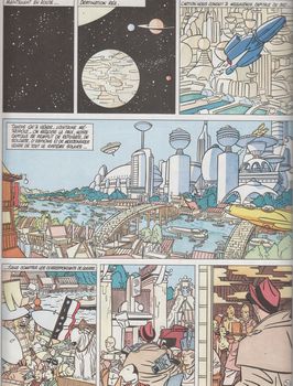 remarques: | Armando Mistral, alias Roco Vargas ne manifeste généralement pas grand intérêt pour tout ce qui risquerait de perturber sa tranquille existence: le Mongo, sa secrétaire Rubi, son serviteur martien Sanson, son robot Cosmo, ses livres, son smoking et une bonne dose de café constituent les piliers de sa paix domestique mais actuellement il est confronté à de sérieux phénomènes, notamment par le mystère qui entoure "l'homme qui murmure" et par les menaces du commissaire bicéphale en plus de ces épreuves, Roco est aussi confronté par a) le trafic de krop, un hallucinogène rare et à la mode b) des ventilateurs, qui, comme l'a découvert, Linx, la célèbre reporter vénusienne, réchauffent l'atmosphère plus qu'ils ne la rafraîchissent c) la guerre coloniale entre Vénus et Réa tandis que la guerre reprend sur Rea, Scarlet et ses complices sont toujours sur la trace de l'homme qui murmure, rencontre de Roco avec Linx, l'espionne vénusienne qui veut neutraliser les ventilateurs, des armes secrètes redoutables que les forces terriennes veulent utiliser pour s'emparer de Réa en devançant les vénusiens, ces armes leur sont fournies par l'homme qui murmure >> p. 27 Massu, cité principale et cosmoport sur Réa les immondes ayant capturé ses amis, Roco Vargas les délivrera et en profitera pour neutraliser l'homme qui murmure = Saxxon = le troisième héros des aventures sidérales (et sidérées!), l'homme qui a survécu à une explosion nucléaire, à voir dans le prochain album à paraître: l'étoile lointaine >> p. 43 le repaire des immondes avec les éthérés = êtres volants et volatiles, recouverts de caoutchouc >> p. 45 la femelles éthérée, étirée et ficelée >> un épisode de Roco Vargas à nouveau abracadabrant, absurde et farfelu à l'extrême et même complètement détraqué mais le graphisme retro-futuriste est toujours aussi captivant n.b. cette série comporte encore 5 autres albums (mais non collectionnés ici): - tome 4 l'étoile lointaine (1989) et 13 ans plus tard - tome 5 la forêt obscure (2002) - tome 6 le jeu des dieux (2004) - tome 7 promenade avec les monstres (2005) et enfin - tome 8 la balade de Dry Martini (2006) |