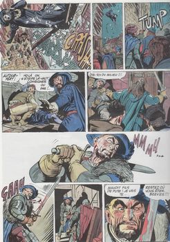remarques: | Nico Macchia, guerrier en exil, et ses compagnons: l'énigmatique combattant musulman Mal Moulal Assad et le jovial Nighe Dommert pénètrent dans la cité de Breda au Pays-Bas en ce froid matin de 1489, dans le climat oppressant d'une ville recouverte par les neiges, Nico découvre l'éblouissante Guénièvre qui entraîne le chevalier sans terre dans les dédales d'une étrange machination, un peintre enlevé, un gouverneur assoiffé de pouvoir et d'argent, des intrigues violentes et passionnées mettent toute la ville en effervescence, ce seront les pièges de la cité des ombres >> p. 5 l'histoire du calife An-Nashir qui, à sa mort, aimait tellement son épouse qu'il la fit décapiter pour qu'elle puisse l'accompagner dans l'au delà à Breda, Martin, un jeune artiste s'est fait enlever par les sbires du bourgmestre qui veut s'accapparer les oeuvres étranges du jeune peintre, Nico promet à Guenièvre, qui protège Martin, de retrouver celui-ci >> p. 20 les prisonniers dans les caves du palais de justice après quelque mésaventure le jeune peintre sera délivré >> p. 40 les explications par Martin sur les dessins qu'il a réalisés d'après ses cauchemars et par la suite le chevalier et ses amis reprennent la piste après avoir oublié la belle Guenièvre >> un aventure épique mêlée de magie, somme toute plutôt banale avec toutefois un graphisme particulier, Ambrosini excellant dans le graphisme, mais pas dans le scénario Information Carlo Ambrosini est un dessinateur italien né le 15 avril 1954, après avoir fréquenté le lycée artistique, il a été diplômé de l'Académie de Brera, il démarre sa carrière en 1976 en illustrant des histoires de guerre pour Dardo et en écrivant le dernier épisode de la série Daniel pour l'éditeur Corno, il collabore aussi avec Ediperiodici et Mondadori, en 1980, il entre chez Bonelli en dessinant quelques épisodes de Ken Parker (Scotty Long Rifle dans Long Rifle) dont il dessinera là encore l'ultime épisode (le 59), en 1984, il écrit et dessine deux histoires de Nico Macchia pour la revue "Orient Express", en 1987, il travaille sur Dylan Dog pour Bonelli, en 1992, il dessine Videomax créé par Graziano Origa, en 1994, il écrit un scénario de Dylan Dog, en 1997, il crée la nouvelle série Bonelli intitulée Napoleone dont il signe la quasi-intégralité des scénarios et quelques dessins, la série s'achèvera au numéro 54 en 2006, toujours chez Bonelli, Ambrosini crée la mini-série: Jan Dix ses oeuvres principales: - Dog Dylan ( 1 album 1994 sur six autres de la série), - Diva, série érotiqe (3 albums sur 5 1985-1987) - Long Rifle, western (collectif PF 101 nos de 1976 à 1987) - Napoleone, genre polar (7 albums de 2020 à 2022) - Nathanaël, heroïc-fantasy (collectif Elvifrance 3 nos 1982) |
