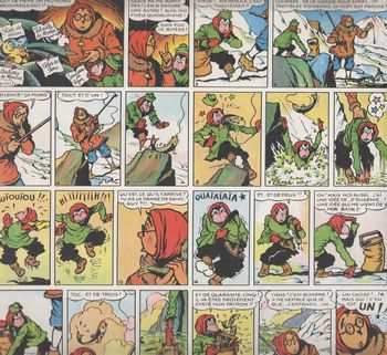 remarques: | réédition de l'album original 1952 dans la série Oscar Hamel, cette série fut créée par Breysse dont cet album représenté ici à titre d'exemplaire représentatif la série comprend 9 albums - tome 1 le mystère de Ker-Polik (1952, réédition 1980) - tome 2 l'oncle du Tchad (1952, réédition 1981) - tome 3 S.O.S. 23-75 (1952, réédition 1981) - tome 4 la montagne de la peur (1953, réédition 1979) - tome 5 la rivière de feu (1979) - tome 6 la cité oubliée (1954, réédition 1980) - tome 7 les conquérants de l'infini (1982) - tome 8 l'idole aux yeux d'émeraude (1995) - tome 9 l'étrange aventure (1996) note Frédéric-Antonin Breysse est un illustrateur, dessinateur et scénariste de bandes dessinées français, né le 20.11.1907 et décédé le 13.9.2001, il est le créateur de la série Les aventures d'Oscar Hamel et Isidore, publiée dans les hebdomadaires Message aux Cœurs Vaillants, puis par Cœurs Vaillants entre 1945 et 1955 Oscar Hamel, Isidore et leur oncle Martial partent à la recherche du professeur Abyssus dont l'expédition s'est perdue dans le Groenland >> p. 6/7 chez les esquimaux Toukourkomani (appelé Toukour par nos explorateurs amateurs) abandonné par leur guide qui les a trahis, nos trois amis avec leur chien Titus et leur singe Cacahuète, errent dans l'étendue glaciale du Groenland lors d'une halte dans un ancien campement, on retrouve un message SOS du prof. Abyssus désignant le lieu 23° de longitude et 75° de latitude arrivé à destination, on ne retrouve que des cadavres frigorifiés mais l'endroit est riche d'uranium d'où la raison de personnes peu scrupuleuses à faire disparaître nos amis ceux-ci réussissent à leur échapper, mais Isidore et son singe se perdent lors de la fuite et se retrouvent échoués sur un banc de glace à la dérive >> p. 23 Cacahuète au prise avec un gros phoque finalement, après bien des mésaventures, Isidore et Cacahuète sont retrouvés avec le prof. Abyssus qui avait perdu la mémoire; retour triomphal au village de leur chère France >>> des aventures enfantines et naïves, mais un graphisme respectable avec surtout une très bonne mise en couleurs |