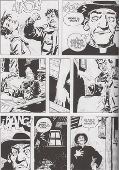 remarques: | tout tourne autour de la famille Centobucchi, immigrés italiens aux USA, les vies de ces 5 frères & sœurs: le mafieux: Amérigo, le prêtre: Francesco (Franck), l'actrice: Caterina, le flic: Antonio (Tony) & la femme au foyer/tueuse à gages: Carmela sont disséquées avec tous les drames, violences et humour; dans la période de crise des années 30 de l'Amérique, chaque personnage révèle un intérêt sans faille, chacun possède sa part de sensibilité, sadisme, curiosité, sympathie qui les rendent tous aussi maso qu'attachants des destins aussi savoureux et emmêlés que les pâtes auxquelles ils doivent leur nom un paquet de meurtres, trahisons avec parfois moralité et religion, une pincée d'amour, une poignée d'humour noir, une louche de sexe avec beaucoup de femmes enceintes ainsi que de confessions dans les confessionnaux, ce qui donne la bonne soupe de la mama spaghetti avec les Centobucchi,on n'est pas toujours d'accord sur la valeur d'une vie humaine, ni sur l'importance de l'argent ou la manière de s'en procurer, petit problème: ce genre de désaccords, chez les Centobucchi, se règle dans les extrêmes,c'est-à-dire à confesse ou à coups de crucifix, le tout servi par un dessin noir et blanc d'une classe impeccable (en tout cas mieux que la réédition en couleur) cette série parait en France aux éditions Vents d'Ouest d'abord en 4 tomes noir et blanc entre 1995 et 1996 (totalisant 768 pages), puis en 16 tomes colorisés de 2003 à 2007, enfin une édition intégrale a également été publiée en novembre 2008 le résumé, premier tome en 24 petits épisodes: 1/ Oedipe roi présentation d'Amerigo Centobucchi, chef de gang qui est vénération pour sa mère décédée 2/ la chair et le diable 3/ passion d'amour Amerigo désire la belle actrice Julia Vernon, mais ce n'est qu'une sale petite pute de cabaret 4/ justice pour tous la confession au père Franck, frère d'Amerigo 5/ justice est faite la punition par le crucifix 6/ le quatrième pouvoir Tony (Antonio) le policier, frère de Francesco et Amerigo, qui aime Caterina, sa soeur actrice (alias Gipsy Boone) autant qu'Amerigo aime sa regretté mère, toutefois Amerigo reproche à son frère Antonio que celui-ci a tué leur mère lorsque celle-ci est morte en accouchant Antonio 7/ le second souffle Tony aime Julia Vernon qui ne peut accepter son amour car il est le frère d'Amerigo qui a violé Julia 8/ sanglantes confessions 9/ belle de jour Carmela, jumelle du curé Franck, son mari le fainéant Domenico et James, leur méchant fils 10/ mariage à l'italienne mais la nuit, la belle de jour, devient tueuse à gages, elle est à la recherche d'émotions fortes, toutefois elle est surprise par Tony, le policier 11/ justice sauvage 12/ Reds arrivée de Nicola, ami-cousin d'Amerigo de par Asunta, tante d'Amerigo 13/ temps sans pitié Amerigo continue ses activités criminelles 14/ légendes d'automne la prochaine conquête d'Amerigo: la petite Lucia Amerigo se débarrassera d'elle et de son amant l'irlandais 15/ le facteur sonne toujours deux fois battue par son mari Domenico, Carmela l'abat à coups de revolver 16/ Rocco et ses frères on cherche à disculper Carmela 17/ témoin à charge l'avocat du diable pour Carmela, celui du gangster Gerscovich, un juif 18/ les temps modernes Timothy, le pasteur anglican, un rénégat anti-papiste, devient gênant pour le curé Francesco 19/ crime et châtiment les secrets de Francesco (Franck) et Antonio (Tony) 20/ crime et châtiment, le retour Carmela est libérée suite à un faux-témoignage 21/ le bûcher des vanités Amerigo règle l'affaire Timothy 22/ les sandales du pécheur 23/ le secret 24/ affreux, sales et méchants >> une sacrée famille Spaghetti, des récits pas trop mal imaginés, simples mais concrets et un graphisme N&B au trait fin, une série tout à fait valable |