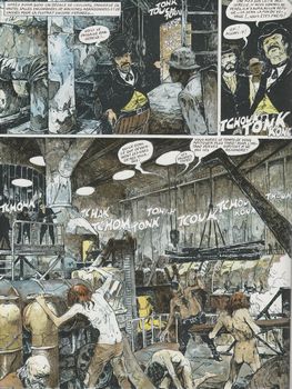 remarques: | après un raid sur une banque d'état, les capahuchos se sont réfugiés dans leurs collines mais avec l'aide de deux traîtres, les troupes du gouverneur leur tendent un piège dans les faubourgs de Brasno >> p. 24/25 bagarre dans les tripots des faubourgs après avoir évité le piège du gouverneur, les capahuchos se dirigent vers le cimetière de la noyée à travers des marécages peu salutaires et seront capturés par les troupes du gouverneur, seule Gil parvient à s'échapper >> un graphisme particulier à Marcelé avec surtout des jeux de couleur mais un texte peu recherché où les rires ah,ah,ah, ah, prédominent |