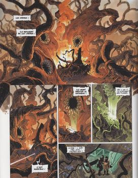 remarques: | album édition originale mais non marqué première édition et sans carnet graphique à peine sauvé de la Méduse, Énée et les siens sont contraints par la déesse Minerve de partir à la recherche du basileus Ulysse qui a mystérieusement disparu dans sa quête, le stratège troyen atterrit sur une étrange planète recouverte par une végétation luxuriante, seules de colossales tours de pierre en émergent, comme pour attirer l’attention des voyageurs spatiaux, leurs habitants, les lotophages, peuple du lotus, sont accueillants, tellement accueillants que personne n’est jamais parvenu à repartir de leur planète la planète est remplie de végétaux à tendance hallucinogène et les habitants en mangeant la plante lotus, sont devenus des lotophages et drogués par ces plantes, les troyens arrivent à oublier leur mission et leur propre raison d’être… toutefois ils parviendront à retrouver Ulysse et à se débarrasser des plantes carnivores puis Enée et les siens pourront continuer leur périple, parcourant l'espace à la recherche de la nouvelle planète que sa mère, la déesse Vénus, lui a promise, mais son destin est loin d'être de tout repos... >>> bien qu’étant un degré en deçà du fléau des Dieux du point de vue de la qualité de l'intrigue, cette série est néanmoins d'assez bonne qualité, toutefois ce troisième volume n'est pas un des meilleurs, c'est une libre adaptation du passage de l’Enéide concernant les Lotophages mentionnant les visions d’Enée provoquées par les curieux habitants de la planète |