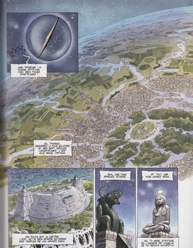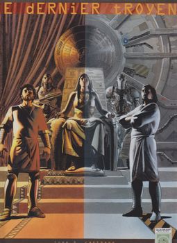remarques: | album édition originale marqué première édition avec carnet graphique le périple d'Enée et les siens les conduit à Carthago la cité spatiale qui vit dans la paix et la prospérité, mais, un jour, la reine Didon aperçoit un terrible danger dans son miroir prophétique: une grande guerre opposera un jour Carthago à la future Rome, afin d'être sûre de sa victoire, elle décide d'empêcher l'existence des Romains: la reine Didon va anéantir les derniers troyens, les futurs fondateurs de Rome, dont la flotte approche de sa cité >> p. 11 la planète Carthago à double façe, l'une avec la cité de Carthago, l'autre avec la cité d'Ogahtrac ce qu'elle ignore, c'est que Vénus, la déesse de l'amour, veille sur son fils Énée et la reine Didon tombera amoureuse d'Enée; rivalité entre Enée et le général Barca qui veut éliminer les troyens mais Enée est destiné à fonder la cité qui dominera l'univers et il devra bientôt quitter Carthago laissant la reine Didon à son triste sort >> le scénario et le graphisme n'ont rien de très particuliers et cette fois le carnet graphique n'est plus aussi intéressant, l'amour d'Enée pour la reine de Carthage est assez bien rendu, l'histoire est prenante et l'idée des deux cotés du miroir est bien exploitée, il est vrai qu'il y a quelques bonnes idées dans ce 4ème volume dont la couverture de l'album |