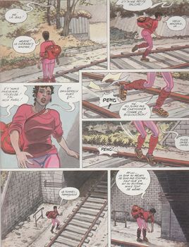 remarques: | les aventures colorées de Naïma, une jeune clocharde algérienne en vadrouille sur l'ancienne voie ferrée de ceinture parisienne: celle qu'on appelait "la petite ceinture" elle y a ses repères et ses repaires, ses habitudes et ses astuces y compris pour son petit déjeuner. elle préfère cette vie de déambulations à une triste existence posée et elle remonte ponctuellement de la voie pour travailler ou faire des rencontres, amis ou famille les tentations sont fortes et parfois la solitude pèse, mais elle a un mot d'ordre "avancer, toujours avancer, c'est ça la solution" dit-elle à un moment, un abri sous les ponts, un peu de fauche (pour les habits et la bouffe), un peu de prostitution (pour le liquide), milieu de la drogue, moeurs politiques, débauche, délinquence juvénile ainsi que la description de voies de métro désaffectées >>> p. 44 les jeux de la chambre bleue c'est un pot pourri sur la société, c'est une fuite en avant permanente, pour se cacher des autres, pour se cacher de soi elle se remémore aussi la désillusion sur l'Algérie, son pays d'enfance >> un texte peu recherché et un graphisme de moins bonne qualité que les deux albums précédents information dans ce genre, il y a encore un album avec comme titre - Charlotte et Nancy (Dargaud 1987) mais non collectionné ici deux filles de milieux assez différents se retrouvent à Paris, où elles ont décidé de faire carrière, elles viennent du sud-ouest et, si elles arrivent en même temps à la capitale, elles n'auront pas le même parcours l'une, Nancy, à la famille aisée, veut devenir attachée de presse et s'inscrit conséquemment à l'école associée l'autre, d'origine modeste, Charlotte, désire faire carrière dans la mode comme dessinatrice. l'une va avoir un parcours tracé, des rencontres qui facilitent une voie, l'autre va galérer, mais leur amitié va survivre à tout ça, et leurs complicités resteront leur force |