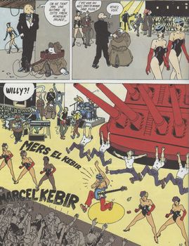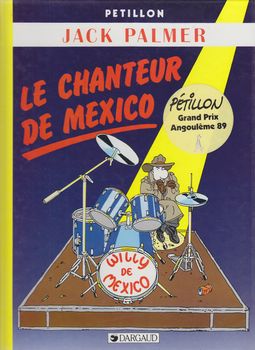 remarques: | la série Jack Palmer, un détective privé nul et gaffeur, créé dans Pilote en 1974 comprend 15 albums (liste voir plus bas), seuls 4 albums sont collectionnés ici à titre d'exemple représentatif Jack Palmer n'a rien du détective belle gueule... reporter de choc et détective catastrophe, c'est Petillon qui s'en donne à coeur joie pour ridiculiser son monde, Palmer est un détective qui ne comprend pas grand-chose aux enquêtes qu'on lui confie mais qui parvient toujours à se faire embarquer dans un typhon d'imbroglios, ses aventures satiriques touchent divers sujets de société: la politique, les médias, la mafia, la jet set,il porte souvent un sac Tati il ne supporte pas le whisky, il roule sur une "Vespa" pourrie, sa mansarde lui sert à la fois de bureau, de chambre à coucher et de salle de bains, il repasse lui-même ses chemises, mais sa planche à repasser accueille aussi son téléphone et son déjeûner, il n'a aucun sens de l'orientation c'est le détective le plus plouc de la bande dessinée Jack Palmer est demandé pour retrouver Willy, le chanteur rock de Mexico qui a disparu il est aidé par miss Multispire, la petite amie de Willy qui suggère à Palmer de séquestrer Pascal le Poulpe, critique de musique à la TV afin de ne pas ébruiter la disparition de Willy >> p. 14 Jack et son brumisateur d'eau d'Evian pour se rafraîchir quand Willy réapparait, on demande à Palmer de retenir Le Poulpe emprisonné afin qu'il ne puisse critiquer négativement le premier concert de Willy quelques mois plus tard, après avoir été jugé et condamné pour l'enlèvement de Le Poulpe, Jack Palmer retrouve ses amis du show-bizz qui l'avaient bien laissé tomber >> p. 31 la soirée cocktail party organisée par Willy rencontre entre Palmer et Supermarketstein, le gourou >> p. 35 le spectacle Mers-el-Kebir avec la flotte suisse et avec Wanda, l'amirale de la flotte suisse! cette fois, Palmer est rappelé pour écarter Supermarketstein qui est devenu le chef spirituel de Willy, mais dépassé par les évènements, Palmer réussira quand même à ses débarrasser de ses emmerdeurs! >> une enquête dans le show-bizz pour Jack Palmer l'intrépide détective, l'album a peut'être reçu le prix d'Angoulême en 1989, il n'en reste pas moins que le scénario n'a rien d'exceptionnel avec toutefois un graphisme respectable liste des albums Jack Palmer: - tome 1 Pétillon (1976) - tome 2 mister Palmer et dr Supermarketstein (1977) - tome 3 la dent creuse (1978) - tome 4 les disparus d'apostrophes (1982) - tome 5 le chanteur de Mexico (1984) - tome 6 le prince de la bd (1985) - tome 7 le pékinois (1987) - tome 8 un détective dans le Yucca (1989) - tome 9 Narco dollars (1990) - tome 10 un privé dans la nuit (1993) - tome 11 Jack Palmer et le top model (1995) - tome 12 l'enquête corse (2000) - tome 13 l'affaire du voile (2006) - tome 14 enquête au paradis (2009) - tome 15 Palmer en Bretagne (2013) + un hors série: le meilleur et le pire de Jack Palmer (1999) annexes - couverture et extraits d'album - couverture du premier album de Jack Palmer publié en 1976 N&B par les Editions du Fromage |