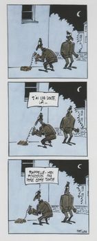 remarques: | la série Jack Palmer, un détective privé nul et gaffeur, créé dans Pilote en 1974 comprend 15 albums (liste voir tome 5), seuls 4 albums sont collectionnés ici à titre d'exemple représentatif l'enquête de Jack Palmer le conduit cette fois en Corse à la recherche d'Ange Leoni mais les corses ne sont pas bavards >> p. 19 le village de Rossignoli et avec la guerre entre factions rivales pour le contrôle du racket, l'enquête de Palmer n'avance guère >> p. 37 le tribunal corse finalement Ange Leoni est retrouvé et Palmer peut lui remettre son acte d'héritage conclusion c'est beau la Corse, c'est juste une île un peu compliquée pour un continental, c'est ce que va découvrir Jack Palmer à ses dépens et personne sur l'île n'a l'air de vouloir le laisser faire, à commencer par les indépendantistes de Corsa Corsica, à moins que ça ne soit ceux du Canal Inattendu, sans parler de la Concoctée, ou peut-être est-ce la Reconcoctée ? Allez savoir heureusement les gendarmes sont sur l'affaire, mais tranquillement, on est en Corse, alors il s'agirait de ne pas faire trop de vagues bref, la Corse vue par Pétillon avec son ironie habituelle et son goût pour l'absurde une page d'histoire corse, mais un scénario pas très corsé et un graphisme qui a rétrogradé on est loin de l'excellent récit du "prince de la bd" |