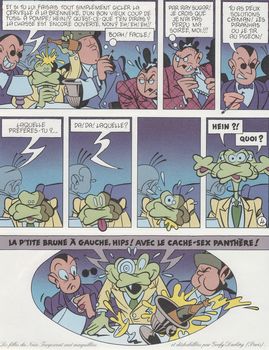 remarques: | troisème volet des exploits de Stan Caïman en sept épisodes 1/ l'expédition de Stan Caïman en Amagonie avec sa fidèle Greta 2/ Stan Caïman contre M. Ralf 3/ Stan Caïman, tueur à gages >> p. 18 Stan qui choisit comme escort-girl la p'tite brune avec le cache-sexe panthère 4/ Stan Caïman et les microfilms épisode se déroulant dans la charmante contrée de Büchen au puissant fumet de choucroute, de jarret de porc et de Gewürtz-Traminer qui fit son charme et sa réputation! 5/ Stan Caïman et l'armée des ondes 6/ Stan Caïman remonte le temps 7/ Stan Caïman et les cornichons >> des exploits tout comme le graphisme en nette baisse (dessins moins lubriques, plus sages, la censure?) |