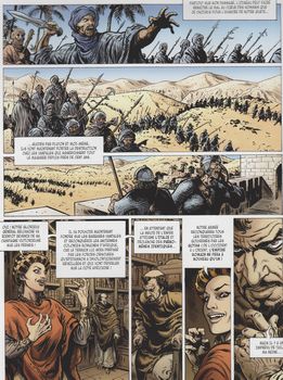 remarques: | à une époque tumultueuse née de l’effondrement du monde antique, un groupe de mercenaires redoutables, la meute, se reforme après huit ans de séparation et part à la recherche d'un trésor fabuleux caché au centre d'enfers légendaires. sur la terre hostile d’Afrique du Nord, les choses se compliquent pour les mercenaires de la meute, ils sont confrontés à des forces démoniaques réveillées par l’Oiseau à son insu, de plus, le charismatique et effrayant Moundhir, l’ancien chef de la Meute et assassiné par ses compagnons des années auparavant, revient de l’au-delà pour les détruire retour sur des exploits vécus par la meute >> p. 13 le guerrier-mage qui fait tomber une pluie de feu >> p. 19 l'épreuve du puit pour le jeune Khorsabad Trois Main >> p. 45 Camarinée, la panthère-princesse se brise les jambes mais retrouve la vue >> p. 51 dernière épreuve pour Triada, l'archère numide >>> quelques bonnes illustrations mais un scénario sans grand attrait qui part quelque peu à la dérive, la chronique du premier tome avait mis en évidence un des points forts incontestables de cette série, à savoir le mélange de deux genres littéraires forts distants l’un de l’autre: l’heroic-fantasy et l’aventure historique. la meute de l'enfer était une série prometteuse mais avec ce deuxième volume, la série dégénère |