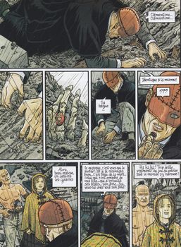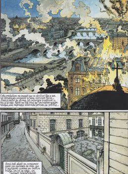 remarques: | introduction pour ce dernier album de la série avec le V majuscule pour voleur, victime et victoire >> p. 7 Paris est en flamme le 23.5.1871 le Huron veille sur Madeleine, sa nouvelle maîtresse qui assassine Frappe-Misère sur la tombe de sa fille Clémentine Nicolas devient le successeur de Frappe-Misère, mais est arrêté peu après par Lévadé, le nouveau chef de la police qui a remplacé Jelabert Nicolas parvient à s'enfuir et à retrouver Anaïs avec qui il commence une nouvelle vie alors que Julien est supprimé par Madeleine, la nouvelle créature du diable Paris sera reprise par l'armée gouvernementale fin mai 1871, 1/4 de la population ouvrière sera supprimée et il y aura 40'000 arrestations >> p. 39 Napoleon III en exil en Angleterre meurt en 1873 des suites de complications rénales causées par une pierre de la grosseur d'un oeil Madeleine, souffrante, est abandonnée par Satan qui jette son dévolu sur Pascaline, fille de Nicolas et de Anaîs, mais c'est maintenant la paix en France et Pascaline repousse l'offre du diable en lui retournant la bague de Clémentine, reçue de ses parents > une note optimiste pour ce dernier album au scénario quelque peu récapitulatif et avec toujours un graphisme acceptable à noter les nouvelles pages de garde bien conçues, mais peu visibles et le Ier plat de l'album est le moins élaboré de toute la série |