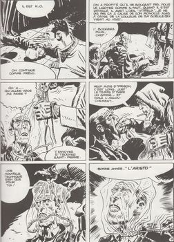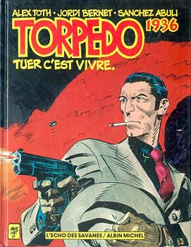 remarques: | Torpedo (ou Torpedo 1936) est une série de bande dessinée policière, publiée en Espagne de 1982 à 2000 et traduite dans plusieurs langues, elle est écrite par Enrique Sanchez Abuli et dessinée par Jordi Bernet dessinée en noir et blanc, elle a été coloriée pour les éditions françaises à partir du tome 4 cette série cynique est constituée de courtes histoires noires, mettant en scène le tueur à gages Lucas Torelli (alias Torpedo) et son acolyte Rascal, aux États-Unis vers 1936, une série qui ressemble beaucoup à la série spaghetti brothers, mais moins affaire de famille il y a eu 15 albums mais seul le présent album est archivé ici à titre d'exemplaire représentatif résumé New York 1936, Lucas Torelli alias Torpedo, sicilien de son état, loue sa gâchette à qui veut éliminer un rival, une femme gênante ou un voisin trop curieux, la pitié est un mot inconnu pour lui, seul l'argent peut adoucir ses mœurs, quand il coule en abondance, à défaut de ne pouvoir être son ami, priez pour ne pas être son ennemi! seul le tome 3 est collectionné ici à titre d'exemplaire représentatif de la série le présent album est constitué de 5 épisodes: 1/ au gui l'an neuf la vengeance de Torpedo sur son ancien caïd l'Aristo 2/ le blanc de l'oeil du noir le contrat pour éliminer un noir et pour l'abattre, il faut viser dans le blanc de l'oeil mais tel est pris qui croyait prendre 3/ flash back Torpedo, membre de la bande du binoclard 4/ l'erreur de Torpedo le chat pris pour un cambrioleur 5/ priorité aux piétons du chantage sur Torpedo par Pat'Folle, ce qui ne réussira pas au piéton Pat'Folle >>> de courtes nouvelles assez intéressantes avec un bon graphisme noir&blanc information folle idée que de regrouper quinze albums et 678 pages en un intégral et pourtant Vents d'Ouest a réalisé le pari de réunir les soixante et un épisodes de la longue carrière d'un tueur à gages qui n'hésite pas à trucider père et mère pour une poignée de dollars, le cynisme, la cruauté et la vulgarité sont souvent à la limite de l'acceptable avec une touche d'humour pour faciliter la lecture pour information, les 15 albums parus dans la série: 1/ tuer c'est vivre, Albin Michel 1983 2) mort au comptant, Albin Michel 1984 3/ ni fleurs ni couronnes, Albin Michel 1984 4/ chaud devant!, Albin Michel 1985 5/ en voiture, Simone, Albin Michel 1986 6/ sale temps!, Albin Michel 1987 7/ Sing-Sing Blues, Comics USA 1987 8/ monnaie de singe, Comics USA 1988 9/ debout les morts, Comics USA 1988 10/dieu reconnaîtra les tiens!, Comics USA 1990 11/rien ne sert de mourir, Comics USA 1994 12/devine qui va morfler ce soir..., Comics USA 1995 13/Cuba, Glénat 1997 14/adieu, gueule d'amour, Glénat 1999 15/affreux, sales, bêtes, méchants et immondes, Toth 2004 + un HS: 9 nouvelles sanglantes, Glénat 1988, il existe aussi un unique album à part titré Torpedo 1936 (1984) et 4 albums Torpedo réédités par IDW Publishing de 2010 à 2012 annexes - couverture et extrait du tome 3 - couverture du tome 1 - couverture du tome 1 de la réédition 2010 |