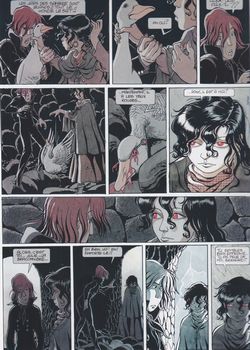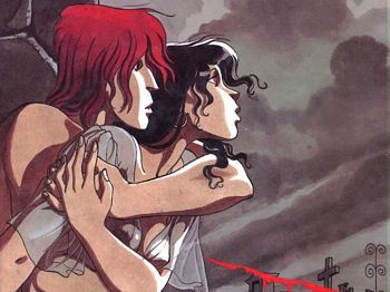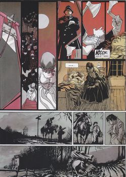 remarques: | premier volume d'une série qui fera date dans la bande dessinée romantique, ce tome 1 est encore scénarisé par Balac, ce sera le seul, à partir du 2ème tome, la série sera entièrement reprise par Yslaire - scénario tragico-romantique à la Balzac, un effort de documentation littéraire durant la révolution de 1848 en France avec un graphisme exceptionnel et un accent mis sur le rouge-sang (la guerre des yeux rouges) et le noir - si la couleur de ce récit évoque "le rouge et le noir", l'atmosphère renvoie irrésistiblement aux "hauts de Hurlevent", car dans cette aventure tout est romantique, palpitant, ténébreux et passionné, "plus ne m'est rien", ce titre sonne comme un blason lugubre: celui d'une malédiction qui entraîne vers la folie, vers l'affrontement amoureux qui détruira Bernard Sambre et la jeune Julie, une oeuvre forte et violente qui réunit Balac, le scénariste mystérieux et Yslaire, le créateur-poète de "Bidouille et Violette" n.b. Balac n'est pas Balzac décembre 1847, peu avant la révolution de 1848, récit de la passion qui unit Bernard Sambre, un aristocrate et Julie, bâtarde et demi-soeur de Bernard, histoire et description de la famille Sambre, un premier album où les sentiments humains sont exprimés avec une grande intensité, ce ne sera en tout cas pas le dernier album de ce genre, car la série prendra un développement plutôt gigantesque avec plusieurs périodes sur l'histoire des Sambre >> p. 9 des yeux couleur rouge-sang >> p. 47 meurtre de la mère par Sarah, soeur de Bernard avec une grande épingle à cheveux, mais c'est Julie qui est accusée annexes - couverture 1er et 4ème plat - extraits de page - ex libris - couverture réédition 2003 Information Sambre est une série de bande dessinée de drame historique créée par Yslaire et Balac, en 1986, ils réalisent ensemble un premier tome, mais à la suite de divergences entre eux, Balac abandonne le projet et Yslaire devient scénariste pour la suite de la série très sombre et mélancolique, Sambre nous raconte l'histoire d'une famille bourgeoise rurale du XIXème siècle et plus particulièrement celle de Bernard Sambre, épris de Julie, une jeune vagabonde aux yeux rouges que sa famille exècre au point de les porter au rang de superstition, les destins, les esprits et les corps s'expriment, se croisent et se blessent, et nul ne peut échapper à son destin... n.b. Sambre est un mot-valise formé à partir de "sang" et de "sombre", mais il s'agit aussi d'une rivière de Belgique une série très prolifique découpée comme suit : A) Sambre deuxième génération (1847-1848), Bernard & Julie, 1) plus ne m'est rien, avec Balac (scénario), 1986, réédité en 2003 2) je sais que tu viendras, avec Balac (participation au scénario), 1990, réédité en 2003 3) révolution, révolution, 1993, réédité en 2003 sous le titre liberté, liberté 4)faut-il que nous mourions ensemble?, 1996, réédité en 2003 B) Sambre troisième génération (1856-1862), Bernard-Marie & Judith 1) maudit soit le fruit de ses entrailles, 2003 2) la Mer vue du Purgatoire, juin 2011 3) fleur de Pavé, septembre 2016 4) celle que mes yeux ne voient pas, novembre 2018 5) nos yeux, nos cheveux, nos fiertés, annoncé, mais non paru n.b. à partir de 2011, les albums ne sont plus collectionnés sur ce site C) Sambre dernière génération (1862-1871), Nelson & Judith (une série prévue mais non parue) 1) au large des amers 2) les cerises de mademoiselle Dyeu 3) toutes les rages de l'espérance 4) le dernier des Sambre hors-série) la légende des Sambre, entretiens avec Jean-Luc Cambier et Éric Verhoest (2003) une deuxième série sur la même famille, la guerre des Sambre, a débuté en 2007 aux éditions Futuropolis/Glénat A) la guerre des Sambre, première génération (1830-1847) - Hugo & Iris 1) le mariage d'Hugo, printemps 1830 by Yslaire, Jean Bastide, et Vincent Mezil (2007) 2) la passion selon Iris, automne 1830 (2008) 3) la lune qui regarde, hiver 1831 (2009) n.b. dans la série la guerre des Sambre, le 4ème plat montre l'arbre généalogique de la famille des Sambre avec leurs nombreuses générations B) la Guerre des Sambre, premier degré d'ascendance (1768-1769), Werner & Charlotte, par Yslaire et Boidin (non collectionné) 1) l'éternité de Saintange, automne 1768 (2010) 2) la messe rouge, automne 1768 (2011) 3) votre enfant, comtesse; hiver 1768 (2012) C) la guerre des Sambre, génération de Cujus (1789-1794), Maxime-Augustin & Constance by Yslaire et Boidin (non collectionné) 1) la fiancée de ses nuits blanches, automne 1775 (2014) 2) le petit jour de la mariée, hiver 1781 (2015) 3) le regard de la veuve, été 1794 (2018) D) la guerre des Sambre livre III (-40 000 av JC) - Aam & Yev cette série prévue ne verra pas le jour 1) la genèse 2) au commencement 3) ecce homo oculis toutes ces séries auront fait l'objet de plusieurs études (nombreuses bibliographies) |