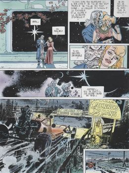 remarques: | la réalité se mêle à la fiction dans un monde futuriste déjanté où plane la menace de la pollution Alise Jason et son compagnon errent dans un monde désolé et pollué où règne la famine et la terreur après une guerre thermo-nucléaire et une chasse aux dissidents intellectuels vers les années 2000 sur un espèce de véhicule à moteur rescapé de la grande guerre, Alise part à la recherche de son père >> p. 17 un Paris dévasté et sous contrôle militaire >> p. 21 les actualités internationales en 2011 diffusées par le canal-fabête en se déguisant en policier, Alise retrouve son père malade et emprisonné par son demi-frère, le président-colonel Pelias mais elle est capturée par les troupes de Pelias, contre la vie et la liberté de son père, Alise est chargée par Pelias de ramener la toison d'or >> p. 36 le bal masqué chez le président Pelias >> p. 40/41 l'histoire de la toison d'or pour son expédition, Alise Jason recrute ses argonautes (dont Heraklès) et embarque avec ses hommes sur un des derniers trains transcontinentaux >> un récit fantastique pour une quête mi-futuriste mi-mythologique, sans grande logique mais avec un graphisme quand même plutôt acceptable, la suite dans le tome 2 "une souris verte" |