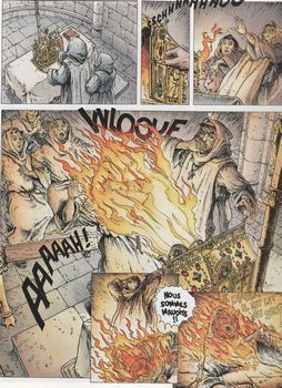 remarques: | 1148, Louis VII le Jeune (dont l'épouse est encore Alienor d'Aquitaine) est aux aboies, ruiné par les guerres, il confie une mission à un ex-templier, Geoffroy de Vincennes, en le lançant à la recherche de l'étoile polaire, un secret qui ne se transmet que dans la lignée des rois et qui pourrait bien changer le monde, l'étoile polaire, celle qui se trouve au milieu du ciel entretemps, Geoffroy et son compagnon, le barde Rumbault, se trouvent à l'abbaye de Jaligny où Satan a jeté son dévolu, avec le supérieur, il enquête sur de nombreux meurtres mystérieux >> p. 21 rencontre avec Polaire, une jeune sorcière avec qui Geoffroy se lie d'amitié (mais rien à voir avec le secret de l'étoile polaire!) un nouveau meurtre est effectué, la sorcière est accusée, Geoffroy prend sa défense et contre le diable, Geoffroy suggère de faire venir un exorciste depuis Rome! >> p. 31 le feu satanique qui sort du tabernacle >> p. 41 la paix du Christ et Geoffroy découvrira l'exécuteur de Satan, c'est le supérieur du monastère qui est devenu dément >> si le graphisme de Delaby, qui n'en est qu'à ses débuts, est déjà de bonne qualité le scénario de Dellisse par contre n'est pas très recherché et s'inspire beaucoup du roman "le nom de la rose par Umberto Ecco information cette histoire est une des premières série dessinées par Delaby, dessinateur des excellentes séries "Murena" et "la complainte des landes perdues" |