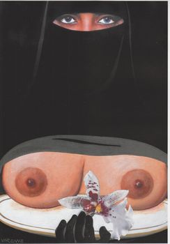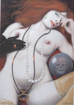 remarques: | - l'érotisme sacré vu par Alex Varenne à travers une interprétation des icones de la peinture la Joconde, Fornarina (Raphaël) et aussi de muses plus contemporaines: Marylin Monroe, Greta Garbo, plus de 100 illustrations inédites, des vierges de l'univers, des madones, des pécheresses le tout sous forme de tableaux inspirés de grands artistes-peintres l'album comporte 3 chapitres: 1) l'attraction universel la femme dans le cosmos (sous la lune, fleurs de Vénus, Eros et Thanatos) 2) figures d'outre-tombe, plexicônes, musée imaginaire femmes flamandes, vierges, madones et princesses en partie avec des têtes d'artistes contemporaines, telles celles de Marilyn Monroe et Greta Garbo 3/ le vol du bourdon les formes féminines sous le voile, aux contours en sfumato telles des ombres dans la pénombre, elles ouvrent les portes du monde des fantasmes, portraits de religieuses, femme à l'assiette de poire, variation sur les langues dernière page: bibliographie des oeuvres de Varenne >> quelques belles illustrations, parfois aussi quelque peu troublantes, telles celles en pages 72/73: femme aux poires, femme au plateau d'huitres, femme aux pamplemousses, seins et plateau de fruits annexes - couverture du livre - diverses illustrations de Varenne |