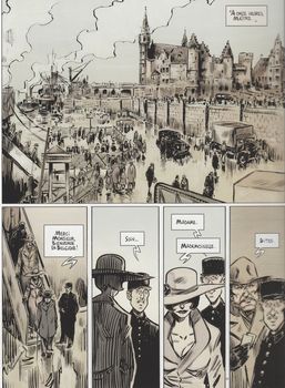 remarques: | les inspecteur Bury et De Vreese sont toujours sur la piste des mystérieux assassins, toutefois le tueur, surnommé crèvecoeur, continue ses méfaits après s'être servi de Prométhée >> p. 11 le mystérieux personnage qui tire les ficelles >> p. 32 le coeur palpitant d'une victime la fameuse femme Rose Noire est maintenant dans le colimateur de la police, elle réussira toutefois à prendre la fuite néanmoins, la police découvre qu'elle travaille pour une société secrète: les chevaliers de la rose noire, une société anti-tsariste, anti-communiste, anti-cléricaux et antisémites, ils prônent une race supérieure, une élite dans l'élite qui veut diriger le pays et assouvir leurs appétits panslavistes n.b. le panslavisme est une doctrine politique, culturelle et sociale qui valorise l'identité commune que partageraient les différents peuples slaves l'enquête se poursuit dans le port d'Anvers mais ne progresse guère plus >> à nouveau un volume déroutant au graphisme peu convaincant même si ce tome 2 lève le voile sur une partie du mystère, il est encore moins réussi que le volet précédent en effet, à force de brouiller les pistes, quelques passages frisent la confusion, quelques scènes se déroulant en parallèle information le 3ème volet "les clavicules de Salomon" clôt le triptyque entamé en 2007 avec Prométhée, les deux premiers tomes auront quelque peu baladé le lecteur dans une enquête policière flirtant volontiers avec l’ésotérisme, récit basé sur "une société secrète souhaitant bouleverser l’ordre mondial" ainsi, l’ultime tome de la série promettait un véritable feu d’artifice en guise d’épilogue, pourtant, c’est plutôt un pétard mouillé qui illustre le mieux ce brouillon final, une fin frustrante donc n.b. ce troisième tome n'est plus collectionné ici |