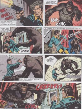 remarques: | un psycho-policier à la Frankenstein dans les Carpathes et le gorille vous salue bien Information - pour cette série, le graphisme alterne entre deux dessinateurs: 1/ Jesus Blasco Montero (1919-1995), considéré comme un des plus grands dessinateurs espagnols, il publie la série Paul Foran (scénario de Gil alias José Larraz) et le western los Guerilleros (scénario de Cusso) dans Spirou parfois sous le pseudonyme de "Montero", il collabore aussi sur Tex Willer et avec Yann Cyclone dans Ivanhoe sur un scénario de Victor Mora ainsi que sur Main d'acier avec Tom Tully pour la revue anglaise Valiant et dans la Bible en bande dessinée sur un scénario de Claude Moliterni 2/ Jordi alias Cusso Bernet (1944- ), il dessine des histoires réalistes pour Spirou, il crée par la suite Andrax, série de science-fiction ainsi que des couvertures pour les séries Atomos et Meteor (Aredit), mais participe aussi dans la série Paul Foran de Gil à noter que le style graphique de ces deux dessinateurs se ressemble beaucoup |