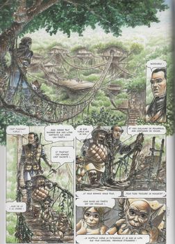 remarques: | rétrospective la Roussotte, fille de Frazor-Bak et d'une humaine assiste à l'exécution de ses parents, parce qu’il avait trahi sa race, celle des démons Hailagmannuz, en tombant amoureux d’une humaine et allant jusqu’à s’accoupler avec elle, Frazor-Bak avait été rejeté par les siens et condamné par Kzyl-Orda à être enterré vivant avec sa bien-aimée à cent pieds sous terre, sous les yeux de sa fille, la Roussotte très longtemps après, et selon ce qu’il avait dit à son bourreau dans ses derniers instants, Frazor-Bak réapparaîtra, mû par la haine envers sa propre race, de leur côté, Guillaume de Beaubreuil et Kubilaï cherchent à entrer en contact avec de petits êtres de la forêt (les lutins) auprès desquels ils savent pouvoir trouver la traduction du manuscrit Mystrisark des Hailagmannuz, quand à Marie, elle découvre le monde souterrain de son père retrouvé ainsi que le dirigant Kzyl-Orda, membre du triumvirat des Hailagmannuz Kzyl-Orda présente maintenant Marie qui a été fécondée par un démon au triumvirat et explique que Marie profitera à la race des Hailagmannuz en prouvant que d'autres femelles humaines peuvent être fécondées par les démons pour assurer leur descendance et la continuation de la race tandis que Frazor Bak prend la muette comme compagne et entreprend de contacter Guillaume de Beaubreuil pour s'en faire aussi un allié alors que celui-ci avec Gaston est en discussion avec Chêne, le patriarche lutin qui est en train de décrypter le manuscrit >> p. 20 l'accouplement entre Marie et Thor, le halaigmannuz entretemps Kzyl-Orda apprend où se trouve le manuscrit et envoie une troupe de choc pour s'en emparer >> p. 34 à 41 les troupes de choc (des géants et des harpies) qui combattent les lutins et leurs alliés >> un album au scénario sans grande cohésion, mais le graphisme reste encore acceptable, une orgie de démons avec le démon Frazor-Back en couverture |