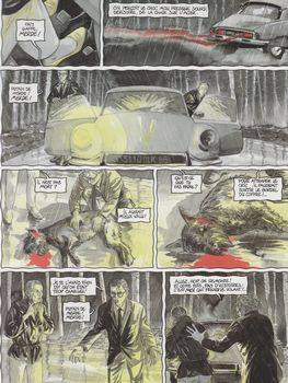 remarques: | juin 1966, dans les Vosges, l'histoire commence par un couple dans une DS 19, ils s'égarent dans une forêt et Claire, la femme, disparaît Pierre Raison, un médecin qui remplace l'ancien docteur Merle, est appelé sans raison dans une ferme pour soigner la fille d'un agriculteur, celle-ci est enceinte et perd du sang, mais il est chassé de la ferme par l'agriculteur petit jeu de mots: faute de merle, il faudra vous faire une raison (l'ancien docteur Merle) obsédé par cette femme qui semble être retenue contre son gré, Pierre en parle à son ami Jean Prévôt, un psychiâtre qui lui conseille de laisser tomber l'affaire mais un peu plus tard, c'est Jean Prévôt qui dans sa jaguar sport type E tombe dans les mailles de la soi-disante femme emprisonnée la fin de l'album finit par Pierre qui déclare à Claire qu'elle est folle à lier >> p. 32 à 35 dissertation sur les rêves et les cauchemars >> p. 45 une partie de pénis en l'air dans les douches >> psychanalyse et fantastique, un album au contenu complètement incompréhensif, écrit probablement par un psychiâtre pour des psychiâtres, où à part la rubrique des chiens écrasés, il n'y a rien d'intéressant et on ne comprend pas aussi pourquoi le titre est intitulé "les chiens du bord du monde", probablement que ce récit a été rédigé lors d'une période de dépression subie par Cothias, au bénéfice de l'album toutefois, un graphisme assez intéressant de Wachs et à la fin, on mentionne encore "fin de l'épisode", malgré la parution d'un seul et unique album n.b. Cothias a probablement dû se farfouiller dans ce récit sans pouvoir trouver le moyen de s'en sortir, car généralement c'est un scénariste doué et prolifique avec d'excellentes séries tels que: - l'empereur du dernier jour - le lièvre de Mars - les sanguinaires - les tentations de Navarre - le masque de fer - le fou du roy et de nombreux autres collectionnées ici avec une très bonne évaluation alors les chiens du bord de route: une erreur de parcours? |