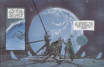 remarques: | troisième album de cette série dans lequel se poursuit une chronique uchronique galactique sans grand intérêt Attila, le roi des Huns, poursuit son inexorable conquête de l’Orbis, l’empire romain galactique, il n’a qu’un seul but: trouver et piller sa légendaire capitale, Rome, pour devenir le maître de l’univers et reconquérir Kerka, la déesse du Chaos qui l’a abandonné, hélas pour lui, Flavia Aetia, la jeune romaine en qui semble s’être incarnée la déesse, n’a pas supporté le massacre de sa famille et la destruction de son monde natal, elle a décidé de mettre sa mystérieuse puissance au service de l’Orbis et de prendre elle-même le commandement des légions impériales, mais Flavia Aetia pourra-t-elle triompher des complots politiques qui minent la cour impériale? seule contre tous, saura-t-elle relever la Rome galactique de sa longue décadence? petit résumé Flavius Aetius avec Flavia Aetia a pris le commandement des légions et s'apprête à refouler l'invasion mongole, mais les intrigues à la cour de l'empire ne font que détériorer la situation tandis qu'Attila veut prendre sa revanche en voulant déclancher une épidémie dans l'empire avec les cadavres de ses ennemis >> toujours peu de cohérence dans cette saga qui tire en longueur avec un graphisme très moyen |