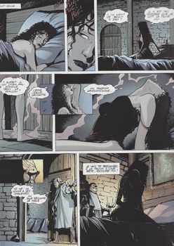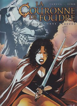 remarques: | une série appelée la couronne de foudre mais avec un seul premier volume: la louve blessée dans ce royaume où s'infiltrent les spectres des Terres Floues, il ne fait pas bon d'être retrouvé crucifié et la mémoire en lambeaux, c'est pourtant ce qui va arriver à Dilys, cette jeune femme que l'on n'aura de cesse de traquer ou d'aduler, suivant qu'on soit parieur ou estropié en quête d'une guérison miraculeuse, dans ce royaume où les tournois se terminent toujours par la mort du vaincu, il n'est pas judicieux non plus de ne pas admettre qu'on est une guerrière redoutée de tous, mais Dilys a la tête vide et n'a aucune envie de la remplir sans comprendre résumé Falous, un vieux chasseur délivre une jeune femme crucifiée dans les ruines du château de Noirgruel, c'est la victime du cruel baron Shol de Noirgruel, la jeune femme sera sauvée physiquement, mais pas psychiquement, car elle a perdu la mémoire p. 12/13 l'histoire de Dilys, surnommée la louve ou la pourfendeuse de chevaliers, Dilys trouve refuge au donjon de Noval, magicien et parfumeur, engagée par Noval, elle devient chasseuse de fantômes un peu plus tard, elle apprend son vrai nom, Marig, elle serait la soeur de Dilys, la fameuse bretteuse, coiffée de la couronne de foudre quand elle apparait dans la lice >> p. 38 le revenant, le hors-le-monde qui habite la demeure de Clochuret, le drapier Marig apprend aussi qu'elle a un fils conçu avec Shol de Noirgruel qui l'aurait violée, puis aurait voulu se débarrasser d'elle en la crucifiant, Marig part alors à la recherche de sa soeur et de son fils, mais sur son chemin, elle est reconnue comme Amaya, la guérisseuse la suite dans un prochain album annoncé avec le titre de "la forteresse des aigles", mais album jamais paru + en fin d'album, un carnet 8 pages de croquis sur la louve blessée >> du fantastique moyen-âgeux mais sans prétention ni pour le texte, ni pour le graphisme |