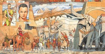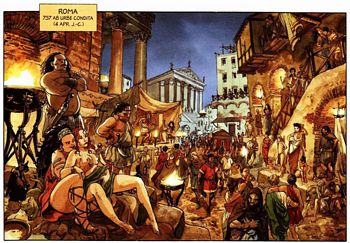 remarques: | l'Antiquité vue dans la bande dessinée d'expression française (1945-1995) thèse de doctorat à l'université de Franche-Comtée, un pavé d'étude de BD sur l'Antiquité, 860 pages, très rare et pratiquement introuvable Première section transposition en BD d'une antiquité chrétienne, littéraire et scolaire a) antiquité et bd biblique à caractère confessionnelle les premières adaptations de l'Evangile: - Don Bosco et Emmanuel par Jijé - la plus belle histoire, illustrée par Breysse dans Coeurs Vaillants - les albums de la Bonne Nouvelle, illustrés par Pilamm 4 albums de 1948 à 1950 - Jesus de Nazareth par Loys Pétillot - la bible en bande dessinée, ouvrage américain de 1977, publié en français par la ligue de la lecture de la bible, 6 volumes broché, N&B, petit format - l'histoire sainte, illustrée par Pinchon (1947) - les peuples de Dieu par Blasco b) les adaptations d'oeuvres littéraires - premiers récits (Horace et Andromaque) par Liquois - le chant de l'alouette (avec le casque gaulois surmonté de deux ailes), dessinateur inconnu, publié dans Coeurs Vaillants - le guerrier aux alouettes par Rigot, publié dans Vaillant - le Salammbô de Flaubert compte parmi les tous premiers chefs-d'oeuvre du roman historique relatif à l'Antiquité - Salammbô sera d'abord mis en bande dessinée par Raymond Poïvet, puis par Novi dans Mondiales Aventures et ensuite par Druillet dans un style heroïc-fantasy au style superbe ainsi que par Jacques Martin dans son album "le spectre de Carthage" c) l'histoire vraie en images - Spartacus sera souvent illustré en bande dessinée - Alexandre le Grand (principalement par Joly) dans les histoires didactiques de la collection Oncle Paul et dans le journal Tintin (récits complets RC) - à noter la grandiose histoire du monde, section antique, par Funcken et Schoojans - le gladiateur par Tillieux dans Heroïc-Albums - l'histoire de Jugurtha (un anti-héros) d'après Salluste, l'histoire de FRanz se distance toutefois quelque peu de celle de Salluste - l'Histoire en bande dessinée et Découverte du Monde par les éditions Larousse enfin Pilote lance un pavé dans la mare en lancant Astérix et Obélix n.b. à cette date reconnaissance de la bande dessinée dont 1972 création des cahiers de la bande dessinée par Glénat et de Hop par Louis Cance 1974 premier festival d'Angoulême deuxième section: bandes dessinées réalistes de fiction a) le temps des illustrés (1945-1960) - plusieurs récits complets sur l'Antiquité dans les magazines Hurrah et Intrépide, souvent signés Goux et surtout la série de Rock l'Invincible (anti-romain) d'origine britannique - puis il y eut Olac le gladiateur (pro-romain) par Pierre Dupuis tout comme Ajax aux éditions SNPI et Aviorix le gaulois dans Heroïc-Albums ainsi que l'empire de Trigan par Don Lawrence qui sont tous en quelque sorte des "superman" de l'Antiquité - citons aussi la bande "le secret de l'idôle" par Calvo parue dans Pierrot, la clé d'Antar et Velthur le Pacifique dans Bayard et surtout la série des Timour, période antique, dessinée par Sirius dans Spirou n.b. mention aussi du mystère de la grande pyramide pour ses illustrations d'égyptologie b) l'émergence d'Alix (1948-1995) par Jacques Martin une série très prolifique pour ces aventures d'Alix, début des studios Lombard dirigés par Hergé et Evany, Jacques Martin et Bob de Moor seront les principaux collaborateurs d'Hergé et un remarquable imprimeur pour les albums Lombard: Van Cortenbergh qui rendit la qualité du coloriage à son plus haut niveau >> p. 198 Martin manifeste un réel talent dans la composition de ses plans et s'affirme comme une excellent "monteur d'images" c'est aussi un grand raconteur d'histoires qui comprend parfois même aussi de la science-fiction à l'antique - dans Iorix le Grand, le récit reprend l'histoire d'Alix là où elle avait commencé - problèmes aussi de l'homosexualité dans les aventures d'Alix (les rapports ambigus d'Alix et d'Enak) - par la suite, les aventures d'Alix deviendront souvent didactiques (tel le spectre de Carthage ou le cheval de Troie) >> p. 225 à noter l'exposition "avec Alix" organisée à la Sorbonne par Pierre Forni en 1984 c) le temps des albums BD de la fin des années 1960 à 1995 - rupture avec les générations précédentes tel que l'Epatant et la Semaine de Suzette, la censure bat en retraite, mais certains périodiques entrent en période de crise (Coq Hardi, Hurrah, Pierrot, etc) - longévité de certaines séries tel que la série Jugurtha par Franz, début de la série Taranis, fils de la Gaule dessinée par Marcello dans Vaillant en 1976 n.b. les périodes antiques favorites sont Rome et l'Egypte d) érotisme et pornographie de l'Antiquité dans la BD, "l'Antiquité libérée" >> p. 255 les règles à observer dans les illustrations BD et une publication peut être interdite à l'affichage si l'Etat juge qu'elle offense la morale publique, ce qui représente une perte commerciale importante pour un éditeur, toutefois premières audaces dès 1960 avec la Barbarella de Forest; il y aura aussi Epoxy, un BD érotique à sujet antique par Cuvelier (1968) et Ulysse par Pichard en 1974 - après quoi, de l'érotisme on passe quasiment à la pornographie tel que dans Messaline, Caligula, les sorcières de Thessalie, etc alors que le Polonius par Tardi occupe une place à part - on costatera également le début d'un nouveau genre: l'heroïc-fantasy dans l'Antiquité tel que Aryanne dessinée par Guillon et la série Aria par Weyland ainsi que l'heroïc-fantasy à l'américaine, le modèle typique étant les récits de Conan le barbare, Red Sonja, King Kull, etc dans ce genre en France, on distingue les armées du conquérant et la vengeance d'Arn par Dionnet, tout comme le Bran Ruz d'Auclair qui produit ainsi de nombreux thèmes celtiques et surtout la série romaine "Vae Victis" par Mitton >> p. 308 à l'antiquité optimiste des année