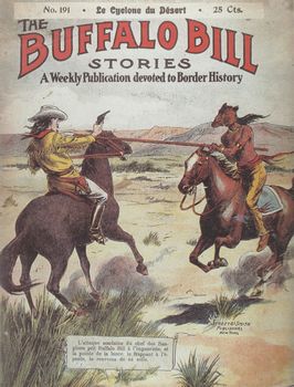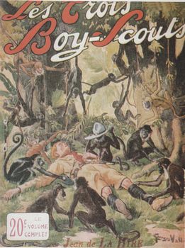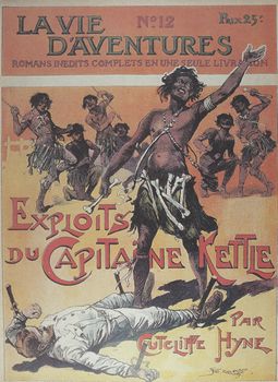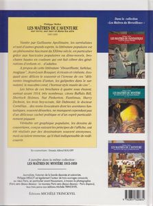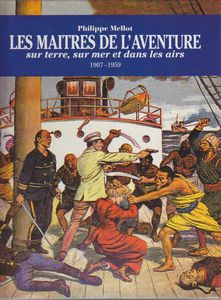 remarques: | tome 2 de la série les maîtres de l'aventure sur terre, sur mer et dans les airs (1907-1959) - l'origine et la bibliographie des romans populaires, des publications populaires et de la littérature de gare, appelés aux USA les dime novels qui sont des brochures souples au format variable avec des couvertures très accrocheuses, mais parfois avec de jolies couvertures d'un véritable art graphique n.b. dime novel = nom donné aux fascicules américains qui se vendaient 10 cents, 10 cents = one dime 1/ Cartouche, le roi des bandit qui appartenait à la légende populaire dans les années 1700, et qui se situait à l'île de la Cité dans le cabaret le Lapin Blanc que Eugène Sue rendit célèbre dans son roman "les mystères de Paris"; édition de 1907 illustré par George Conrad aux éditions Fayard, autres fascicules de ce genre: les martyrs de l'Inquisition, la vie d'aventures et Rocabol le bandit 2/ Stoerte-Becker, le souverain des océans (1910) oeuvre d'origine allemande par Jean Petithuguenin, dessiné par Léo Hingre et aussi Morgan le pirate, le roi des sept mers et Bras qui venge, la terreur des pirates 3/ Buffalo Bill, le héros du Far West publié par Street+Smith, l'imposant éditeur américain de dime novels avec aussi la publication du fameux détective Nick Carter, les récits de Buffalo Bill furent créés par le journaliste Ned Buntline surnommé "le découvreur" (1907-1930) 4/ Texas Jack, la terreur des indiens qui attribuait systématiquement le mauvais rôle aux indiens publié de 1906 à 1936 aux Editions de la Nouvelle Populaire, autres titres de ce genre: Rouges et Blancs, par Jean Petithuguenin oeuvre d'origine allemande sous le titre "der neue Lederstrumpf" (1912-1927) 5/ Sitting Bull + les chefs indiens célèbres (1907-1914) auteurs: Gustave Aimard (édition française), principalement illustré par Alfred Roloff, et par Karl May (édition allemande) parmi les chefs indiens célèbres, il y eut aussi: l'apache Bloody-Hand et Santana, le chef mohican Wennonga, le chef comanche Mah-Topah et le chef shawnie Tecumseh 6/ le tour du monde de deux gosse, dès 1898 auteurs:Henry de la Vaulx et Arnould Galopin, édité par Tallandier 7/ le corsaire sous-marin (1912-1937) avec son lot de découvertes, d'exploits et d'inventions, récits de différents auteurs, illustrés par Gil Baer et Michel Jacquot, aux Editions Férenczi 8/ le tour du monde en aéroplane (1910 par les mêmes auteurs du tour du monde de deux gosses, autre publication de ce genre: cent mille lieux dans les airs 9/ aventures de boy-scouts (1911-1937) par l'écrivain Jean de La Hire, autre titre de ce genre: l'as des boy-scouts tous les deux aux Editions Ferenczi >> p. 67 les oeuvres de Jean de La Hire avec son personnage-fétiche: le Nyctalope 10/ vie d'aventures et de chasse du dompteur Edmond Pezon, avec "Miss Boston", la seule détective-femme du monde entier, les éditions Albin Michel tentaient une aventure éditoriale inédite, publié dès 1909 11/ les aventuriers du bout du monde, c'est l'un des derniers titre de ces fascicules populaires, après la seconde guerre mondiale, ces aspirations vont s'éteindre ou du moins se transformer entraînant la disparition des fascicules populaires (avec toutefois quelques exceptions) les titres les plus connus dans ce genre: - la vie d'aventures, splendide collection éditée par "le journal des voyages" , concurrent du journal "le tour du monde" par Hachette (1907/1908) - voyages et aventures (1912-1916) publié par l'éditeur allemand Alwin Eichler n'eut pas le temps de s'imposer en France - les grandes aventures (1912) par Férenczi, parmi les auteurs, Jo Valle, qui allait devenir un des principaux écrivains des éditions Offenstadt - mon bonheur , magazine populaire illustrée de la famille - collection d'aventures, une importante série publiée par les éditions Offenstadt de 1916 à 1926 - la collection "Patrie" , publié dès 1917 par les éditions Rouff, principalement récits de guerre et autres aventures - la collection "les romans d'aventures" éditée par Férenczi (1921-1956) - collection "l'Aventure" illustrée Gino Starace, le fameux illustrateur de la série Fantômas autres titres: le petit explorateur, chasseur de fauves, Bill Fellow, le chinois fantôme par Yves Le Gall, voyages et aventures par Ené Duchesne, héros d'aventures (en partie par Liquois) et l'énigmatique Fen-Chu par George Fronval n.b. avant de devenir l'illustre créateur du commissaire Maigret, Georges Simenon eut une carrière d'écrivain populaire prolifique vers 1924 aux éditions Férenczi dans des oeuvres pour la jeunesse >> un deuxième tome toujours aussi intéressant mais moins passionnant que le premier tome, surtout de par les illustrations, peut'être un peu moins originales annexes - 1er et 4ème plat del'album - diverses couvertures |