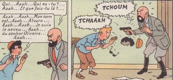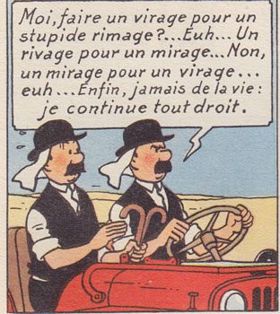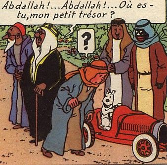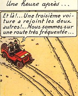 remarques: | 9 cases mémorables de l'album au pays de l'or noir dont la dernière est une planche rarissime ayant paru dans Coeurs Vaillants avec les Dupondt conduisant une voiture d'époque (1939) et non plus la jeep rouge de l'édition 1950 |