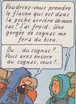 remarques: | 9 cases mémorables de l'album Tintin au Tibet à noter: la publicité pour le cognac (d'habitude c'est plutôt le whisky) |