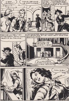 remarques: | troisième volet des aventures de cape et d'épée dessinées par Devi, cette fois au début du XVIIIème siècle pour sauver le Régent. Philippe d'Orléans >> un graphisme toujours bien intéressant, quoique les dessins parus dans les petits formats Blek, Kiwi et Pipo étaient de meilleure qualité et en partie couleur; scénario inspiré du roman d'Alexandre Dumas |