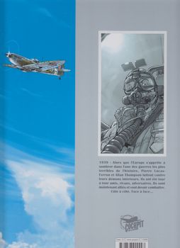 remarques: | 2ème album de la série, il n'y en aura que deux volumes, album 2007, marqué 3ème édition (mais l'édition originale est aussi de 2007) en page de garde, description des - Supermarine Spitfire Mark V (1941, 602 km/h) - Supermarine Spitfire Mark IX (1942, 657 km/h) - North American P-51 Mustang (1942, 708 km/h) exhibitions du dark angel (Pierre) dans le Flying Circus en Californie, Pierre Lucas fait alors équipe avec Jimmy Tucker, l'as de la voltige aérienne mais il en est vite fatigué et rejoint l'escadrille Alsace des Forces Françaises Libres, les USA entrent alors aussi dans le conflit et Allan Thompson, ancien compagnon de Pierre rejoint le front européen dans l'escadrille américaine "Eagle" c'est ainsi que les deux rivaux vont devenir presque ennemis sur le front aérien de la guerre >> p. 26 de nouvelles créatures font leur apparition dans le ciel >> p. 41 une superbe forteresse volante mais après s'être concurrencé pour le nombre d'ennemis abattus, Pierre se reconciliera avec Allan en sauvant la vie de celui-ci mais en y laissant la sienne >> un très bon album tant pour le scénario que pour le graphisme, en tout cas meilleur que le premier tome |