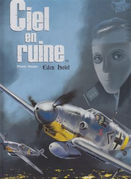 remarques: | album 2012, première édition mais dernier album de la série Nikolaus Wedekind en vacance dans les sommets helvètes, la perte de contrôle simulée sur son M 262 a parfaitement fonctionné et lui a permis de gagner la Suisse >> p. 3 première vignette: le Matterhorn (Cervin) >> p. 4 Bâle, le Spalentor et son inestimable Kunstmuseum mais en fait Nikolaus se retrouve dans un hôpital militaire, sauvé par ses copains aviateurs, gravement brûlé, mais vivant >>p. 7 il reçoit la distinction des "geflügelte Stiefel" (bottes ailées) Nikolaus sort bientôt de l'hôpital mais il doit encore porter un masque de contention (compressif et post-lifting) sur le visage >> p. 8 Berlin, l'avenue unter den Linden en ruines >> p. 13 le Bomberkarle, un bombardier allié surnommé ainsi par les berlinois car tenu insaississable qui vient régulièrement harceler Berlin >> p. 14/15 l'histoire de Johannes Wedekind, frère de Nikolaus et as de l'aviation allemande tel que Erich Hartmann, premier pilote qui dépasse les 300 victoires ainsi que les célèbres Nowotny, Marseille, Mölders parmi de nombreux autres à mentionner aussi le major Erich Rudorffer, 12 victoires sur M 262, recordman du plus grand nombre de victoires en une mission >> p.19 les manoeuvres aériennes dans les combats >> p. 35 la partie de dés et la série se termine dans un amas de bombes incendiaires dans le zoo de Berlin! >> un album décevant qui fait peut'être ressentir les voluptés d'un pilote de chasseur mais pas celui du lecteur, avec un graphisme qui laisse aussi un peu à désirer, un tout petit album pour finir la série, dommage car les dessins des M 262 étaient de toute beauté Information Eden Hotel, une adresse disparue et plusieurs fois consumée qui n’ouvre que sur le vide et les souvenirs meurtris d’une impitoyable défaite sous le ciel infini de Russie un gros bémol est à porter sur la narration globale de l'histoire, on a parfois du mal à comprendre le cheminement du héros Nikolaus ainsi que le but qu'il poursuit, dans un registre ésotérique, on admet que le guide qui l'accompagne sous les traits d'un chien est peut-être le diable lui-même résumé de la série ciel en ruine le succès de cette série d'aviation sur la fin de la seconde gGuerre mondiale montrée du côté des pilotes allemands est tel que l'éditeur Paquet est parti pour une deuxième saison, avec 85.000 albums vendus en 4 tomes, il aurait eu tort de s'en priver, l'originalité du thème par son point de vue à la fois historique et fantastique, la belle ligne claire d'Olivier Dauger et l’efficacité des combats aériens ont permis de trouver un public fidèle, le 5ème tome vient clore la première saison en permettant de mieux comprendre l'itinéraire héroïque du frère défunt du jeune pilote Nikolaus Wedekind ciel en ruine montre la fin de la Guerre: de jeunes pilotes peu entraînés lâchés dans le ciel pour combattre la coalition du monde entier; les bombardiers britanniques et américains qui viennent déverser jour et nuit leurs bombes destructrices, le jeune héros Nikolaus Wedekind avait mal fini à la fin du tome 4, il se retrouve à cauchemarder dans sa chambre d'hôpital à Berlin, son visage brûlé, il n'est plus apte au combat, il va profiter de son escale dans la capitale du Reich pour remonter les traces de Johannes, son frère qui l'a précédé dans la Luftwaffe où il a suscité le respect de tous ses pairs sur le front russe pour ses prouesses au combat calqué sur le mythe de Faust, cette série met particulièrement bien en opposition le bien et le mal, le paradis et l'enfer, et encore davantage dans ce tome 5, déjà son titre Eden Hôtel contraste avec le représentant canin des Enfers, ensuite, le héros rêvait d'échapper à cet enfer en se suicidant; derrière cette symbolique qui distancie les événements, l'auteur continue d'éclairer d'un angle original les récits de guerre, ici il montre la vie sous les bombes dans la capitale allemande, avec des scènes de flash-back, il refait vivre l'héroïsme aérien de Johannes durant l'offensive en U.R.S.S. en 1941, de quoi passionner les amateurs d'histoire comme de combats aériens, même si le récit du tome 5 est beaucoup moins dense que les épisodes précédents, au dessin, Olivier Dauger fait évoluer son style, son encrage, plus proche du comics des années 50 que de la vraie ligne claire, est désormais manuel et non plus réalisé avec l'outil informatique, ses couleurs toujours harmonieuses sont moins en aplat alors que les scènes aériennes restent de belle facture, on regrettera tout de même de très nombreux gros plans de personnages par trop figés dans des planches bien moins denses |