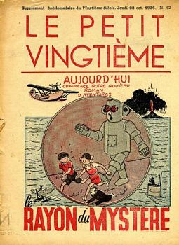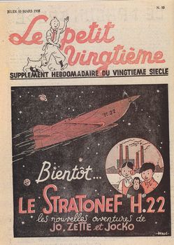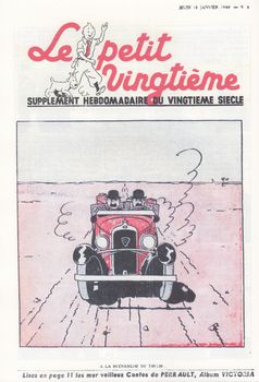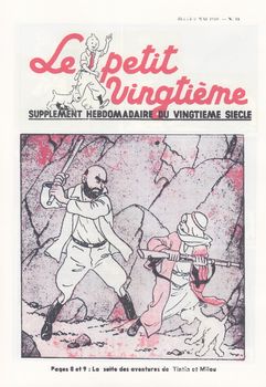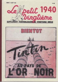 remarques: | tome 3 de l'univers d'Hergé, le Petit Vingtième, deuxième partie 1935-1940 1935 le mystère Tintin se poursuit, les petits vingtiémistes acclament le reporter à son retour d'Extrême-Orient, aussitôt après, Tintin repart pour de nouvelles aventures qui deviendront l'oreille cassée pour Tintin, c'est déjà la célébrité tout comme les deux plus fameux gamins de Bruxelles >> p. 7 le 18.4. réapparition de la rubrique "le mystère Tintin" (des questions-énigmes sur les aventures de Tintin) >> p. 8/9 les personnages du mystère Tintin >> p. 11 à 25 nombreuses couvertures sur le lotus bleu >> p. 32, 17.10.1935 le retour de Tintin de Chine est annoncé >> p. 38, 5.11.1935 début des nouvelles aventures de Tintin (l'oreille cassée) et le mystère Tintin continue sous une nouvelle forme - 1936 tandis que l'oreille cassée se poursuit, Tintin est acclamé à travers toute la Belgique grâce au Petit Vingtième, le 22 octobre commencent, avec le rayon du mystère, les aventures de Jo, Zette et Jocko, ces nouveaux héros consomment la disparition momentanée de Quick et Flupke les nouvelles aventures de Tintin (l'oreille cassée) continuent mais la rubrique "mystère Tintin" disparaît (c'est le rayon du mystère qui prend la suite!) >> p. 56/57 le concours "notre insigne" organisé pour les lecteurs du Petit XXème avec page 60 le résultat définitif >> p. 68 no 41 du 15.10.1936, l'annonce pour le rayon du mystère l'année 1936 c'est aussi la guerre italo-éthiopienne et le triomphe du mouvement rexiste de Léon Degrelle ce qui induit Hergé à dessiner une vignette avec un spectre satanique portant le panache rexiste et brandissant la faux de la mort (voir annexe) n.b. cette vignette ne sera pas reproduite dans l'album Rombaldi et sera d'ailleurs quelque peu censurée, en tout cas non publiée dans la série des Quick et Flupke, uniquement dans le tome 2 des Archives Hergé >> p. 77 l'histoire de la parution de Jo, Zette et Jocko dès janvier 1936 dans l'hebdomadaire français Coeurs Vaillants - 1937 après l'oreille cassée, une nouvelle aventure démarre: l'île noire cependant que continue le rayon du mystère; les derniers numéros de l'année font preuve d'une importante innovation: la couleur début des Tintin actualités et de coin des timbrés, le 18.2. les aventures de l'oreille cassée se terminent et le 15.4. c'est déjà le début de l'île noire >> p. 110/111 une innovation rehausse les dessins d'Hergé: la couleur, rien de bien sensationnel encore, un simple rouge qui se superpose au noir et blanc, mais désormais le pli est pris et le 9 décembre, le vert devient une nouvelle couleur - 1938 le 31 mars, de nouvelles aventures commencent pour Jo, Zette et Jocko avec le stratonef H22, quelques mois plus tard, le 4 août, Tintin part pour une nouvelle destination: la Syldavie, mais l'année 1938 marque aussi un évènement de taille: les 10 ans du Petit Vingtième >> p. 119, nos du 10.3. et du 24.3.1938 les annonces pour le stratonef H22 >> p. 120/121 les images de l'île noire en N&B, rouge et vert >> p. 131, juin 1938, retour des exploits de Quick et Flupke >> p. 134, 4.8.1938, couverture pour le sceptre d'Ottokar avec le prof. Halambique le 10 novembre, un film de projections fixes avec Tintin et Milou est disponible >> p. 146/147 le 15.12. le Petit Vingtième fête l'anniversaire de ses 10 ans avec entre autre un interview inédit de Hergé (n.b. à noter que les textes mentionnent indifféremment de Hergé ou d'Hergé) - 1939 le 10 août prennent fin les aventures de Tintin en Syldavie, le 5 octobre, Tintin au pays de l'or noir prend la relève; Quick et Flupke profitent de la fin du stratonef H22 pour faire une réapparition remarquée, mais même sur le Petit Vingtième, c'est la menace de la guerre qui commence à planer dans le numéro du 26 janvier, nouvelles rubriques dont la vie sportive et malgré l'ombre de la guerre et de la mobilisation, Hergé continue à soigner la qualité des couvertures du journal >> p. 171 annonce pour les albums des aventures de Tintin et Milou par Hergé, sont mentionnés 7 albums: Tintin au Congo, Tintin en Amérique, les cigares du pharaon, le lotus bleu, l'oreille cassée, l'île noire et le sceptre d'Ottokar pour le prix chaque de 20.- fr belges (n.b. il n'y a pas d'album pour Tintin chez les soviets) le 10 août, c'est déjà un peu la débâcle qui commence avec la mobilisation et Hergé boucle les aventures de Tintin en Syldavie, il annonce toutefois la nouvelle aventure de Tintin au pays de l'or noir qui ne débuteront toutefois que le 12 octobre (Hergé étant mobilisé) - 1940 malgré la mobilisation d'Hergé, les aventures de Tintin au pays de l'or noir continuent, le Petit Vingtième remédie à sa pénurie de collaborateurs en faisant appel à ses jeunes lecteurs mais ce sont les aventures du journal lui-même qui vont prendre fin le 9 mai 1940 - le 9.5.1940 parution du dernier numéro du Petit Vingtième qui ressemble de par la qualité à la piteuse feuille de chou qu'il était à l'origine comme mentionné à la page 197 (une critique quand même un peu exagérée!) >> p. 198 la lettre d'excuse d'Hergé (18.4.1940) concernant l'interruption du pays de l'or noir suite à sa mobilisation >> et pages 199 à 214 reproduction du dernier numéro du Petit XXème avec les deux dernières planches de l'épisode inachevé de l'or noir >> à nouveau un album très intéressant avec surtout de superbes illustrations annexes - diverses couvertures du Petit Vingtième - les personnages du lotus bleu - couverture Petit XXème 23.1.1936 - Flupke le sauvage, couverture du 5.3.1936 - l'avion mystérieux, couverture du 15.4.1937 - le rayon du mystère, couverture du 22.10.1936 - le stratonef H22, couverture du 10.3.1938 - au pays de l'or noir, couverture du 17.8.1939 - à la recherche de Tintin, 18.1.1940 - dernière couverture du Petit XXème, 9.5.1940 - la vignette anti-rexiste par Hergé |