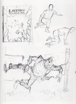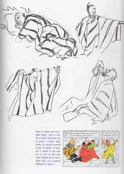 remarques: | reliure Rombaldi no 6 l'univers d'Hergé, projets et croquis Hergé à l'oeuvre des éléments Tintin basés sur trois ensembles exceptionnels, documents réunis et présentés par Benoît Peeters 1) les carnets de notes que tint Hergé à la fin des années 30 2) les scénarios mis en oeuvre juste après Coke en stock et qui se trouvèrent finalement abandonnés au profit de Tintin au Tibet 3) le dossier complet de l'histoire de l'aéroport envisagée entre les Picaros et Tintin et l'Alph-Art c'est un peu l'aventure de la création hergéenne qui ne le cède en rien aux aventures de Tintin a) éléments Tintin, l'imagination au travail dès le lotus bleu, Hergé commence à peaufiner ses scénarios en adoptant des carnets de notes pour coucher sur le papier les idées qui lui viennent à l'esprit avec quelques points de repère puis de laisser mûrir une histoire avant d'entreprendre de la réaliser à l'époque, l'imagination d'Hergé est d'ordre cellulaire: plutôt que les structures globales, ce sont les séquences qui sont privilégiées et c'est autour d'elles que le récit coagule eau à peu, un autre élément frappant est la variété de ces annotations les deux carnets présentés sont de 1937/1938 et 1939/1941, pour les années suivantes, on ne trouve plus trace du moindre carnet soit que ceux-ci ont été perdus soit, plus probablement, que les recherches narratives d'Hergé aient pris une autre forme le premier porte sur la couverture ces simples mots: Tintin, éléments et concerne principalement l'oreille cassée, sceptre d'Ottokar et l'île noire le deuxième carnet est moins dense et plus désordonné que le premier, davantage envahi par les notations publicitaires et commerciales, il recèle pourtant bien des perles dont la première moulure du crabe aux pinces d'or b) recherches et croquis certains des dessins ici présentés sont purement documentaires, mais pour la plupart de ces images, c'est un mouvement qu'elles cherchent à restituer, toutefois le dessinateur ne va pas tarder à s'en rendre compte: le mouvement n'est pas seulement spectaculaire, il réside aussi dans les gestes les pluls simples et les attitudes les plus courantes c) entre Coke et Tibet l'automne 1957 est pour Hergé une période de graves hésitations, sur le plan personnel d'abord: amoureux de Fanny Vlaminck, il est sur le point de quitter son épouse et d'entamer une nouvelle vie; en ce qui concerne Tintin, le trouble n'est pas moins fort, en l'espace de quelques mois, Hergé va se lancer sur plusieurs pistes narratives extrêmement différentes, ne parvenant pas à se décider un projet avorté avec Michel Greg: les pilules et le thermozéro >> p. 98 à 133 le scénario de Greg pour "les pilules" >> p. 135 à 166 le scénario de Greg pour "thermozéro" avec crayonnés d) la piste indienne >> p. 167-169 récit de la relation d'Hergé avec le père Gall de l'abbay cistercienne de Scourmont, surnommé Lakota Ishnala (le sioux solitaire), nom que lui a donné le chef indien Black Elk, ce sera la recherche d'un nouveau scénario pour affrondir les aventures de Tintin en Amérique et >> p. 170/171 la réponse du frère Gall sera quelque peu un résumé de l'histoire des peaux-rouges e) la piste tibétaine cette vingtième aventure de Tintin qui, dans sa forme achevée, est certainement le plus dépouillé des albums d'Hergé, fut sans nul doute celle qui connut le travail de gestation le plus complexe, ce n'est pas le moindre paradoxe de cet ouvrage admirable f) croquis et marges, la méthode et son envers la formation des studios en 1950 conduit bientôt Hergé à modifier sa façon de travailler et à systématiser sa méthode, dès 1954, les crayonnés sont réalisés sur des feuilles distinctes de la planche originale, puis reportés case après case au moyen de calques n.b. cette méthode fut exposée en détail par Hergé dans son livre "cinquante de travaux fort gais", texte reprise dans le musée imaginaire de Tintin >> p. 200/201 quelques croquis réalisés à l'époque de vol 714 g) un jour dans un aéroport à peine achevé Tintin et les Picaros, au début de 1976, Hergé se relance sur un nouveau thème: une action se déroulant dans un aéroport, mais dans le cas de l'aéroport, le déclic ne se produisit jamais et les pièces du puzzle ne parvinrent pas à s'assembler et cela finira par une ébauche de Tintin et l'Alph-Art épilogue le lecteur de ce volume n'aura pu manquer de s'en rendre compte: l'imagination d'Hergé n'a cessé d'évoluer au fil des ans, tant pour ce qui est des thèmes que de leur développement et sa façon d'aborder une histoire s'est radicalement transformée; cette évolution permanente est le signe le plus indubitable du vivant, elle prouve, si la chose est encore, nécessaire, que la création d'Hergé n'eut jamais rien de mécanique ou de simplement technique, la longue plongée dans son intimité créatrice que nous venons d'effectuer ne fait, somme toute, que rendre encore plus dense le mystère de son oeuvre >> un album toujours assez intéressant mais il y manque bien sûr les superbes illustrations que l'on est accoutumé à admirer dans les autres albums Rombaldi annexes - projets de scénario et de dessin - portrait du père Gall (Lakota Ishnala) - ébauche pour l'affaire Tournesol |