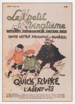remarques: | tome 2 de l'édition Rombaldi sur l'oeuvre intégrale d'Hergé, dès ce tome 2, les textes d'introduction sont effectués par Benoit Peeters 1/ Tintin en Amérique pour ce troisième épisode, Hergé se documentera un peu plus que pour les deux précédents notamment avec le numéro spécial du Crapouillot de 1930 consacré aux Etats-Unis où Chicago est décrit comme la capitale du crime, son récit sera d'ailleurs d'abord intitulé les aventures de Tintin, reporter à Chicago ainsi qu'avec le livre de Duhamel "scènes de la vie future" dont l'article sur les abattoirs de Chicago impressionnera beaucoup Hergé Hergé aurait principalement voulu axer son histoire sur le peuple indien qui le fascinait depuis le scoutisme, très vite pourtant, le projet évolua pour ne laisser finalement aux peaux-rouges qu'une place assez réduite dans l'album Tintin en Amérique fut prépublié dans le Petit Vingtième du 3.9.1931 au 20.10.1932, quant à la version couleur ici reproduite, elle fut redessinée en suivant le récit d'origine avec quelques améliorations (1946) pour l'anecdote, mentionnons que si les zaïrois avaient réagi avec humour au paternalisme de Tintin au Congo autant les éditeurs américains se montrèrent réticents vis-à-vis du portrait de leur pays qu'avait tracé Hergé, Tintin en Amérique fut la dernière des aventures du reporter à être traduite aux Etats-Unis et elle n'y connut pas un grand succès n.b. ce fut toutefois l'album le plus vendu dans le monde >> p. 11 à 13 couverture du Petit XXème du 15.10.1931 et autres couvertures >> p. 19 à 80 les 61 pages (nombre fixé pour les albums couleurs) de Tintin en Amérique >> p. 26 l'erreur d'orthographe anglais corrigé: wonderful au lieu de wonderfull dans la 1ère version couleur >> p. 65 idem pour la dernière vignette de la page, la matrone noire et son bébé noir ont été remplacés par une femme blanche et un bébé blanc 2/ les cigares du pharaon avec les cigares du pharaon, le roman policier et le mystère font une entrée en force dans la série, cette aventure représentant la quintessence du récit feuilletonesque; Hergé y inaugurait un nouveau style de récit et tout cet attirail mythologique est manié par Hergé avec infiniment de légéreté, beaucoup d'humour et une visible jubilation c'est aussi que paraissent pour la première fois un certain nombre de personnages clés de la série (les agents X33 et X33 bis qui deviendront les Dupondt dans la version couleur, mais aussi Oliveira da Figueira, Rastapopoulos et Allan Thompson et dans un certain sens le pharaon Kih-Oskh) à noter que c'est aussi la première fois que la personnalité héroïque de Tintin n'occupe plus toute l'espace du récit aventure prépubliée du 8.12.1932 au 8.1.1934, la version couleur ne fut édité qu'en 1955 >> p. 85 une couverture du Petit XXème et 88/89 de nombreuses autres >> p. 95 à 156 version couleur mais avec quelques petites corrections par rapport à la version originale couleur >> p. 109 la couverture de l'album est maintenant objectif lune au lieu de Tintin au Congo >> p. 146 Milou a disparu de la 1ère vignette, 3ème rangée, puisqu'il ne réapparait que dans la page 151 3/ Popol et Virginie au pays des Lapinos seule incursion d'Hergé dans le registre animalier, c'est une plongée dans la pure fantaisie mais malgré une première séquence fort amusante, la deuxième moitié est déjà moins intéressasnte et l'album déconcerte davantage qu'il ne passionne, Hergé avouera lui-même s'être vite désintéressé de ces héros l'histoire a comme origine les aventures de Tom et Millie produites pour les grands magazins Innovation prépublié dans le Petit XXème du 8.2.1934 au 16.8.1934 >> p. 161 couverture du Petit XXème du 8.2.1934 et 162/163 l'ensemble des couvertures de Popol et Virginie >> p. 169 à 228 version couleur de 59 planches >> p. 169 la profession de Popol: chapelier qui le mettra en concurrence avec le fabricant de coiffures de plumes de la tribu des Lapinos (crise économique, armement, guerre et ses conséquences) 4/ les exploits de Quick et Flupke, 1ère série tout au long des années trente, Hergé fit vivre parallèlement à Tintin, deux garnements insupportables appelés Quick et Flupke. deux gamins insolents, les keetjes, comme on les appelle en bruxellois (Quick était le surnom d'un ami d'Hergé et Flupke voulait dire Flup = Philippe et le ke flamand qui signifie petit c'est le 23 janvier 1930 que commence leurs exploits qui allaient se poursuivre jusqu'en hiver 1940-41 date à laquelle Hergé cessa définitivement de créer de nouveaux gags; à partir de 1949, les exploits de Quick et Flupke mis en couleur pour le journal Tintin se trouvèrent repris dans des albums de moyen format, mais ce ne seront que 166 histoires réparties en onze volumes qui seront éditées sur les 300 qui existent en totalité >> p. 227 couverture du Petit XXème du 16.6.1938 et >> p. 234/235 et autres couvertures >> p. 236-243 8 planches (1931) sur Monsieur Mops, un genre de Charlot >> p. 248 à 295 48 planches de Quick et Flupke en partie N&B et couleur >> p. 262 le juron typiquement bruxellois "potferdeke", ça est pour sûr un "aéro-litre" >> un album toujours de bonne qualité et restant intéressant annexes - couverture de l'album - couvertures du Petit XXème se référant a) en Amérique b) cigares du pharaon, c) Popol et Virginie d) Quick et Flupke |