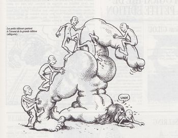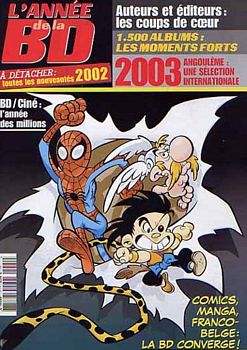 remarques: | l'année de la bande dessinée 85-86 - un an de librairie en 1985, il a paru au total 848 albums tout compris, c'est 50 albums de plus qu'en 1984 soit 6% en plus, grande progression des sériegraphies = affiches = genre de portfolio - les petits éditeurs en 1985: éditions Gilou à Chaville (France), Kesselring à Lausanne (Suisse), Schlirf-Book à Bruxelles, Bedescope à Bruxelles, Ansaldi à Bruxelles, Trihan à Paris, éditons Goupil à Hounoux (France), éd. Garnault à Paris, Aedena à Paris, éd. du Miroir à Louvain-la-Neuve (Belgique), Bedefil à Lille, éd. des Archers à Bruxelles - documentaire sur Franquin, l'école Spirou - guide des meilleurs albums BD (50 albums sans classification) - la profession de représentant en BD, chargé de vendre les productions de l'éditeur au libraire - les héritiers d'Hergé principalement Ted Benoit et Joost Swarte - la presse BD: Vécu, Corto, BD Magazine, Psikopat, Zoulou, Pilote, Charlie, Circus, Métal Hurlant - l'histoire du périodique Metal Aventure qui, malgré de belles couvertures, ne parvint pas à stabiliser ses ventes situées au-dessous de celles de Métal Hurlant, lui-même en régression - la presse érotique notamment les petits formats de Elvifrance qui tiennent le coup sous le titre: le cul, pas mort >> p. 128 les éditions Magic-Strip >> p. 130 Casterman à la croisée des chemins >> p. 138 la décennie humanoïde (Métal Hurlant, Ah Nana, Rigolo, Métal Aventures) >> p. 146 le lecteur de BD, cet inconnu enquête avec un panel d'étude (1985): 80% sont des hommes, 60% sont âgés de 10 à 30 ans, 30% sont des étudiants, la constitution de bibliotèques BD: en moyenne 760 albums par personne (un très gros collectionneur possède près de 6000 albums) et le graphisme reste avec 37% le choix des lecteurs, suivi par le nom de l'auteur avec 27%, du personnage BD avec 12% et du scénario avec 9%) >> p. 150 le hit parade des auteurs 1/ Franquin 2/ Giraud-Moebius 3/ Pratt 4/ Bilal 5/ Tardi 6/ Comes+Jacobs+Schuiten 7/ Bourgeon+Hergé 8/ Rosinski 9/ Cosey+Hermann 10/ Manara 11/ Juillard+Servais >>p. 160 les fanzines: British Comic et Speakeasy (Angleterre), Comixene, Zack, die Sprechblase und Comic forum (allemagne), Stripschrift, Bommelkoerier et Stripmix (Pays-Bas), il Fumetto et Fumo di China (Italie) >> p. 174 à l'école des bulles merveilleux moyen de culture, la bande dessinée est souvent irréprochable sur le plan de la documentation, ce qui est sûr, c'est qu'elle peut constituer un outil pédagogique de première grandeur >> p. 182 la bande desinée chinois >> p. 192 previews >> p. 207 entretiens avec Franquin par Numa Sadoul >> un deuxième volume tout à fait honorable n.b. après ces deux premiers volumes, il y en eut encore deux dernières parutions: 86-87 et 87-88 annexes - couverture de l'album - les petits éditeurs à l'assaut de la grande édition (illustration de Crumb) - couvertures 86-87 et 87-88 - couverture 2002-2003 Information la série fit son apparition pour les années 81 à 84 par les éditions Temps Futurs, puis 84 à 88 par les éditions Glénat enfin reprise par les éditions Soleil de 2002 à 2005 |