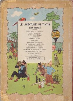 remarques: | Tintin, le trésor de Rackham le Rouge, 2ème choix, B3 1949, côté BDM € 150.- dernier titre au 4ème plat: le temple du soleil (EO = A24 1945) mauvais état à état moyen, intérieur bien complet non déchiré, tranche dos DR complet mais refait >> commentaires voir section Tintin albums EO |