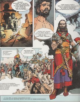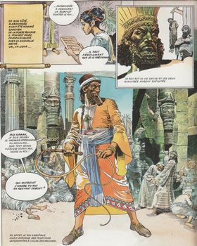remarques: | 5ème volet de la collection découvrir la bible, Ancien Testament l'exil à Babylone, Jérémie, Ezéchiel, un nouvel Isaïe voir aussi documentation sur la bible dans dossier 505 1/ Jérémie, la réforme du roi Josias par La Fuente (livre de Jérémie) - vers le VIIème siècle BC, Juda et Israël se retrouvent en prise aux Assyriens, Assurbanipal s'empare d'Israël, de la Syrie et même de l'Egypte dont Thèbes en 663 BC - à Jérusalem (appelée aussi Sion), Manassé, fils d'Ezechias compose avec les assyriens, il est critiqué par les prophètes ( Michée, Osée, Amos et Isaë) qui sont mis à mort, alors pour garder leurs paroles, celles-ci sont consignées par écrit dans le Deutéronome - en 642 BC, Amon avec son jeune fils Josias, succède à Manassé, mais Amon assassiné peu après, Josias lui succède dans l'esprit de la Torah, - le jeune Jérémie grandit dans les environs de Jérusalem, devient prophète et se rend à Jérusalem où déjà Sophonie, un autre prophète y prophétise - profitant du déclin de l'Assyrie, Josias se laisse convaincre et effectue une réforme religieuse en détruisant les faux dieux assyriens - entretemps, les babyloniens et les mèdes se dressent contre l'Assyrie qui, elle, s'allie avec l'Egypte, en 612 Ninive tombe, le prophète Nahoum avait dit d'elle: "parce que tu as dépouillé de nombreuses nations, tout le reste des peuples te dépouillera" Assur et Ninive étaient les plus anciennes villes de l'Assyrie - malgré des renforts égyptiens, les assyriens sont écrasés à la bataille de Karkemish - Josias livre bataille aux égyptiens mais il est battu à Meggido et meurt, Joachaz lui succède mais le pharaon Nekao le fait venir en Egypte en captivité et met Joiaqim, frère de Joachaz, sur le trône de Juda 2/ Jérémie, la ruine de Jérusalem par La Fuente - sous Joiaqim, l'idolâtrie refleurit, Jérémie la critique à nouveau et prédit des temps de malheur pour Jérusalem, il est jugé par un tribunal et condamné à l'exil - un nouveau conquérant apparait: Nabuchodonosor de Babylone, Baruch devient l'assistant de Jérémie >> p. 615 les souffrances de Jérémie - Joiaqim meurt, Joiakin, son fils, lui succède, Jérusalem se rend à Nabuchodonosor en 597 BC, celui-ci épargne Jérusalem mais envoie des milliers d'hommes en exil à Babylone et remplace Joiakin par Sedenias, oncle de Nabuchodonosor - Hanania, le faux prophète contredit Jérémie, en 588 Jérusalem se révolte et est aussitôt assiégée par Nabuchodonosor, Sedenias est supplicié et Jérusalem rasée, Jérémie meurt désespéré mais prédit encore le retour de l'exil 3/ Ezéchiel, prophète déporté à Babylone par Marcello (livre d'Ezéchiel, livre d'Isaïe) - les royaumes de Juda et d'Israël n'existent plus, Ezéchiel continue les prophéties de Jérémie et prédit la destruction de Babylone - Ezéchiel se rend à Babylone pour transmettre la parole de Dieu et il compare les faux prophètes aux chacals >> p. 646 la résurrection des ossements (je vous couvrirai de chair) - Ezechiel meurt sans voir ses prophéties se réaliser 4/ un nouvel Isaïe par La Fuente - vers 570 BC, Babylone où règne Nabuchodonosor est la plus prestigieuse cité du monde, Astarté, la favorite du roi, détourne Nabuchodonosor du culte de Baal, le nouvel Isaïe essaie de se faire entendre et un renouveau religieux ranime l'espérance des juifs >> p. 626 les rois de Babylone: Nabopolassar, Nabuchodonosor, Avil-Marduk, Neeiglissar, Labashi-Marduk, Nabonide, Balthasa régent - Nabonide succède à Nabuchodonosor et introduit à Babylone le culte du serpent Sin au détriment de Baal et Marduk - entretemps, Cyrus le perse, bat à Sardes les égyptiens, alliés à Crésus, roi de Lydie, finalement Cyrus met le siège devant Babylone, gouverné par Balthazar, fils de Nabonide devenu à moitié fou qui s'est retiré dans une oasis du désert d'Arabie - en 539 la ville est prise par Cyrus et son fils Cambyse mais Babylone est respectée et reste entière 5/ Daniel, le visionaire par Poïvet (livre de Daniel, d'Esther et de Ruth) une partie des israëlites retournent en Judée avec la permission de Cyrus et les fils d'Israël s'appeleront désormais Judéens, Yehudim d'où les Juifs >> p. 674 les souverains perses: Cyrus II le Grand, Cambyse, Darius I, Xerxès I, Artaxerxès I retour dans le temps: - 4 israëlites de sang royal sont choisis pour servir à la cour de Nabuchodonosor: Ananias, Misaël, Azarias et Daniel, Daniel révèle à Nabuchodonosor ses songes angoissés ainsi que la prophétie à Balthazar, fils de Nabonide, qui mène une vie de débauche "tu seras mesuré, pesé et partagé" (son royaume partagé), - Darius succède à Balthazar et prend Daniel sous sa protection, toutefois une ordonnance du roi mentionne qu'on ne doit adorer que le roi sous peine d'être jeté dans la fosse aux lions, Daniel est dénoncé et jeté dans la fosse, mais les lions ne le touchent point >> les quatre visions de Daniel pour quatre animaux monstrueux: un lion ailé, un ours, un lion à quatre têtes et la "Bête", seul la bête sera tuée par les anges de Dieu (ces 4 animaux représentent 4 royaumes dont l'un d'eux assujettira les autres mais sera finalement détruit par l'archange Michel) 6/ l'histoire de Ruth, aïeule de David par Frisano - au temps des juges, Elimélech quitte Bethléhem pour le pays de Moab, ses enfants épousèrent deux moabites: Orpa et Ruth, leurs maris morts, Orpa reste en Moab et Ruth se rend avec sa mère Noémie en Judée, pour survivre Ruth va glaner dans les champs et se fait remarquer par le propriétaire Booz qui l'épouse >> p. 703 le droit de descendance de Ruth et le droit de rachat 7/ Esther, une jeune femme qui sauve son peuple par Frisano - au temps de l'empire perse sous Xerxès (485 BC), celui-ci organise une fête du peuple et demande à la reine Vashti d'y participer, celle-ci refuse et est répudiée - Xerxès recherche une nouvelle femme et to