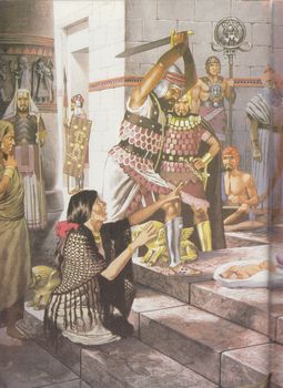 remarques: | tome 5 David et Salomon la sorcière d'Endor, le roi David, la femme d'Urie, le prophète Nathan, le viol de Thamar, la trahison d'Absalon, le roi Salomon, le cantique des cantiques, la reine de Saba, Jonas et la baleine 1/ David et Saül - pour s'en débarrasser, Saül nomme David chef d'un millier = chef mililtaire d'une tribu mais David revient toujours victorieux, Saül lui donne alors sa fille Mical en mariage, Jonathan devient l'ami de David, mais fuyant la haine de Saül, David se réfugie dans une grotte de la montagne - reconciliation entre Saül et David dans la grotte d'Engadi où David aurait pu tuer Saül, David prend Abigaïl de Carmel comme seconde épouse, plus tard, quand Saül poursuit à nouveau David, celui-ci lui donne à nouveau une preuve de sa fidélité en le surprenant dans sa tente sans lui faire du mal n.b. les preux de David au Moyen-Age qui sont neuf parfaits chevaliers: a) 3 païens: Hector, Alexandre et César b) 3 héros de l'A.T.: Josué, David et Judas Maccabée c) 3 héros chrétiens: le roi Arthur, Charlemagne et Godefroi de Bouillon >> p. 588 l'histoire d'Abner, lieutenant de Saül qui, à la mort de Saül, se rallie à Isboseth, descendant de Saül, puis se brouille avec lui et rallie David, mais il est tué par Joab, preux de David dont le frère Asaël avait été tué par Abner 31ème constatation: a) où est la morale dans ce récit? b) et David obéit-il vraiment à Dieu? - mort de Samuel, nouveau combat de Saül contre les philistins qui cette fois arrivent armés de fer et Saül qui craint les paroles de destitution de Dieu frémit de peur pour la bataille, Samuel mort, Saül demande conseil à Dieu qui ne répond pas, Saül cherche alors son salut chez la sorcière d'Endor et demande d'appeler l'ombre des morts (dont celui de Samuel), Saül apprend par l'ombre de Samuel que son combat sera perdu et qu'il perdra la vie, mort au combat de Saül et de Jonathan >> sorcière = nécromancienne = qui consulte les morts n.b. dans les prochaines batailles, il n'y a plus de chars mais toujours des cavaliers sans étriers 32ème constatation - Saül montre-t-il du repentir? - Dieu n'aurait-il pas du montrer de la miséricorde (car au fond la faute de Saül est moins grave que celle plus tard effectuée par David) - de la sorcellerie dans l'Ancien Testament? - contradiction sur la mort de Saül (1 Samuel 28,20-25 et 31, 1-5 avec 2 Samuel 1, 1-16) - psaume de David sur Jonathan "ton amitié était pour moi plus belle que l'amour des femmes" 2/ le roi David (1000 BC) - David devient roi d'Israël, il s'empare de Jérusalem, l'appelle cité de David et y construit la ville et son palais, mais dans le nord, Abner fait proclamer roi Isboseth, fils de Saül, pour unifier Israël, David choisit Jérusalem comme capitale - David bat encore les philistins deux fois et ramène l'arche d'alliance à Jérusalem 33ème constatation: la punition imméritée d'Uza qui touche l'arche d'alliance - Dieu marche avec David qui bat aussi les Moabites, les Araméens, les Edomites et les Amalécites n.b. les conquêts de David sont confirmées historiquement - David laissera un royaume fort, centralisé et organisé, il est entouré de prophètes et il est considéré comme le bon berger de son peuple, David est un bon vivant: danseur, chanteur, il écrira de nombreuses psaumes en forme de prière et complétés par ses scribes, il aime aussi beaucoup les femmes - David s'éprend de Bethsabée, l'épouse d'Urie, le hittite, un de ses preux qui était à la guerre, et fait un enfant à Bethsabée >> p. 616 les raisons pourquoi on ne retrouve plus d'archives sur David à part la bible (les papyrus écrits se sont détériorés, ceux de la bible étaient plus solides!) - David rappelle Urie et essaie de lui donner du repos chez sa femme pour que l'enfant puisse être de Urie, ce que Urie ne fait pas, David renvoie alors Urie au combat avec une lettre pour Joab qui mentionne: "arrange-toi pour que Urie soit tué" 34ème constatation: David n'est donc pas toujours un bon roi - le prophète Nathan reprochera ce crime à David mais David se repent et dieu lui pardonne, toutefois David sera quand même puni et l'épée ravagera ses enfants et ses femmes lui seront ravies (seul le premier-né de Bethsabée trouvera en fait la mort) n.b. à noter le repentir de Saül (pas sincère?) et celui de David (sincère?) mais dont la faute est plus grave (qui deviendra chez les chrétiens la contrition parfaite = grand regret d'une faute) 3/ David au mont des oliviers - Bethsabée eut un premier enfant de David qui mourut et un deuxième: Salomon qui devient le successeur de David, mais ses autres enfants connurent une fin tragique a) Thamar, violée par son demi-frère Ammon b) Salomon ne punit pas Ammon et ce sera Absalon, frère de Thamar, qui tuera Ammon pour se venger 35ème constatation: Saül le premier, puis David et Salomon eurent plusieurs femmes et constituèrent même des harems (celui de Salomon avec 700 épouses et 300 concubines, à la gloire de Dieu?) - Absalon doit s'enfuir mais David lui pardonne, toutefois Absalon va quand même comploter contre David, révolte d'Absalon, David s'enfuit sur le mont des oliviers ne voulant pas déclancher une guerre civile >> p. 636 le mystère du psaume 22 qui décrit le désespoir de David avec plusieurs mots ressemblant à la souffrance de Jésus avant sa mort - Absalon part à la poursuite de son père >> p. 638 les conseillers d'Absalon: Husaï et Ahitophel - David réorganise ses troupes et se prépare au combat, les troupes d'Absalon sont battues, Absalon s'enfuit mais sa chevelure reste enchevêtrée dans les branches d'un chêne et il est tué par Joab contre la volonté de David n.b. de nombreuses forêts couvraient alors la Palestine il y a 3000 ans avant la désertification qui s'est développée lentement - David pleure son fils car il sait que c'est par sa faute commise avec Bethsabée que ces évènements arrivent, 