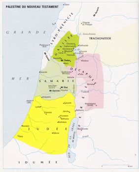 remarques: | l'Evangile de Jesus (Nouveau Testament) présenté par une équipe de pères jésuites - la Palestine au temps des romains, le prophète Zacharie, la naissance de Jésus, la fuite en Egypte, le prophète Jean-Baptiste, les noces de Cana >> p. 44 Jésus guérit aussi durant le Sabbat >> p. 54 la pécheresse Marie-Madeleine est respectée par Jesus >> p. 65 la tête de Jean-Baptiste sur un plateau >> p. 69 homme de peu de foi >> p. 95 une des prédictions de Jesus: il y aura de la joie dans le ciel pour un seul pécheur qui se convertit plus que pour 99 justes qui n'ont pas besoin de conversion (référence au fils prodigue) >> p. 156 la mort de Jésus >> p. 171 le plan de Jérusalem le livre est agrémenté d'un tableau des civilisations de 2300 BC (Egypte et Sumer) à 500 AC (Constantin et empire byzantin) ainsi qu'un petit dictionnaire biblique, historique et géographique de A (Aaron) à Z (zélote) mais apocalypse, lévirat et autres noms tels que Jézabel ne sont pas mentionnés >> un volume de la bible en bande dessinée sans prétention mais assez bien exécutée tout comme le texte plutôt édulcoré |