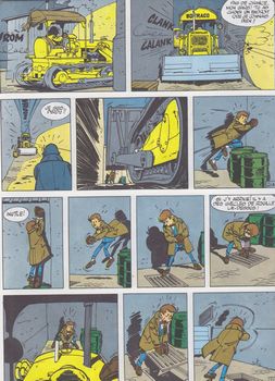 remarques: | très bon épisode de Gil Jourdan contre Jo la Séringue, l'homme-sauterelle, la 203 de l'aventure et les cargos voués à la démolition, une affaire d'escroquerie à l'assurance - Jo la Seringue vient de s'évader de la prison de Morboeuf, le mystère de son évasion reste inexpliqué -maître Samson Loucq se sent menacé, Crouton et Jourdan surveillent chacun de son côté maître Samson dont le comportement semble anormal pour ce genre de situation - maître Samson est enlevé à la barbe de la police par un étrange homme-sauterelle, Jourdan commence à avoir de sérieux soupçons >> p. 18 le bois travaille aussi la nuit >> p. 19 la 203 de l'aventure - Jourdan se laisse surprendre mais parvient à s'échapper dans des circonstances très chanceuses >> p. 20/21 à nouveau un accident spectaculaire où Tillieux excelle dans son style >> p. 28 le snack dans un "snake" et prisonnier dans le congélateur - l'enquête se poursuit au port du Havre vers les cargos du crépuscule = = cargos voués à la démolition où le notaire Samson est arrêté en flagrant délit d'escroquerie à l'assurance-vie, c'est lui qui a imaginé de se faire tuer et qui éliminera par la suite Jo la Séringue >> p. 39 le cargo du crépuscule >> un récit bien combiné avec rebondissement et un graphisme excellent |