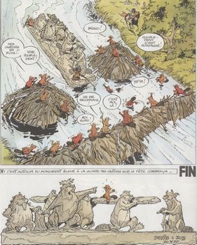 remarques: | >> p. 17 et ce sont toujours encore les femmes qui travaillent, aussi chez les castors >> p. 26/27 au boulot sur les bouleaux >> p. 41 le plan de sauvetage >> p. 46 la statue du castor-artiste |