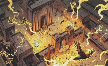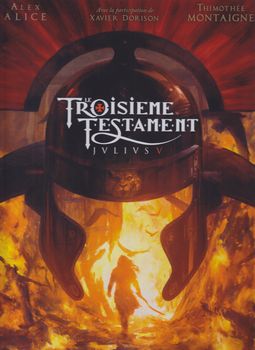 remarques: | résumé de la série (pour une meilleure compréhension de ce dernier album): le général Julius Vindex, ambitieux déchu, est condamné à l'esclavage dans les mines de soufre de Judée, rejoint dans l'épreuve par sa fille Livia, il se trouve lié au destin d'un esclave chrétien que des rebelles juifs considèrent comme le messie annoncé par les écritures, en son nom, les guerriers zélotes libèrent les esclaves de la mine et les entraînent vers la forteresse rebelle d'Ein Gedi, le sage Gamaliel convainc l'esclave chrétien qu'il est le frère du christ, destiné à révéler au monde le "troisième testament" qui ouvrira les portes du royaume des cieux, pour cela, il doit suivre l'appel vers l'Orient qui résonne en lui depuis sa naissance, Julius et six élus accompagnent celui qu'on nomme désormais "Sar Ha Sarim", mais pour la plupart d'entre eux, la quête prend fin dans la folie et la mort, Julius et Sar Ha Sarim achèvent seuls leur voyage au sommet d'une montagne, à bout de forces, Julius finit par trouver la foi, il sent que le troisième testament est tout proche, c'est alors qu'une crevasse s'ouvre sous ses pas, incapable de poursuivre, il demande à son compagnon de l'abandonner pour atteindre seul la révélation, mais au bout de leur voyage, le Sar Ha Sarim ne peut se résoudre à sacrifier la vie de Julius, il renonce à sa quête et à sa foi, et laissant Julius, blessé, à l'abri du monastère, Sar Ha Sarim retourne en Judée pour accomplir ce que Julius voulait qu'il fasse initialement, se servir de la foi des rebelles pour les unir, les mener au combat et libérer son peuple, Sar Ha Sarim retrouve Livia, la fille de Julius et l'épouse, mais ses succès le conduisent à croire à nouveau en son destin divin, et au-delà de la Judée, il veut libérer le monde entier effrayé par son ambition, ses amis le trahissent et veulent le forcer à transiger avec l'empereur Néron, toutefois leur plan tourne mal: Livia est victime d'un piège tendu par le mystérieux sénateur Modius, tandis que le Sar Ha Sarim est capturé et crucifié sous les murs de Jérusalem, désunis, les rebelles reculent façe à l'occupant romain, commandé par le consul Vespasien, c'est alors que Julius revient d'Orient, porteur d'un rouleau scellé: le troisième testament, mais l'élu de Dieu n'est plus digne de sa mission, un autre viendra, un jour pour ouvrir le rouleau sacré et les portes du royaume des cieux, malgré ses suppliques, Julius abandonne son ami et se laisse prendre par les autorités religieuses qui enferment le troisième testament dans le temple de Jérusalem sous la garde d'un prêtre effrayé, Julius, lui, est jeté dans un cachot, mais le Sar Ha Sarim n'est pas mort sur la croix, le jugeant prêt pour son initiation aux ténèbres, le sénateur Modius, qui l'a sauvé, l'emmène là où les sables du désert ont recouvert les vestiges d'une cité maudite Sar Ha Sarim, ça rime à quoi? espérons que ce dernier album nous le révélera tandis que Sar Ha Sarim est manipulé par le sénateur Modius dans le cénacle (réunion) des savoirs interdits, nous retrouvons Julius, ex-général romain qui a tout abandonné, dans une geôle de Jérusalem, mais l’homme est détruit, les trahisons et les erreurs de sa quête ont fait de lui un homme qui ne veut plus se battre, Julius rencontrera le sage Gamaliel qui a sauvé Livia, fille de Julius, mais celle-ci lui reprochera d'avoir abandonné sur la croix Sar Ha Sarim dont elle attend un enfant pourtant, une nouvelle menace, plus grande que jamais se prépare, Sayn (Satan) avec Sar Ha Sarim lève une armée pour retrouver le sceau du 3ème testament, gardé par un prêtre dans le temple de Jérusalem et même si la ville est assiégée par les légions romaines, Julius doit s’y rendre pour tenter de dérober le sceau avant que l’inévitable ne se produise et malgré son désespoir, Julius ne peut se résoudre à laisser ce sceau déchaîner la colère divine sur le monde des hommes ce 5ème livre est particulièrement musclé, car Jérusalem est l’arène de tous les affrontements: entre zélotes, sicaires, romains et l’armée des “hommes-corbeaux”, c’est une mêlée sanglante et terrible dans laquelle les auteurs nous jettent >> p. 44/45 l'attaque de l'armée des ténèbres la scène finale sera la rencontre de Julius avec son destin qu’Alex Alice a mis en scène, il “boucle la boucle” en intégrant tous les germes du premier cycle, dans cet ultime épisode, mais on fait plutôt tourner le lecteur en rond dans cette boucle qui finalement n'explique pas grand chose, une fin où l'on demande toujours au lecteur de la comprendre au deuxième degré, du moins, le graphisme de Montaigne reste agréable à l'oeil |