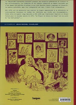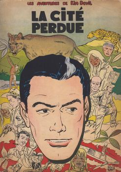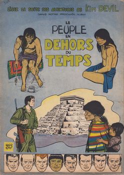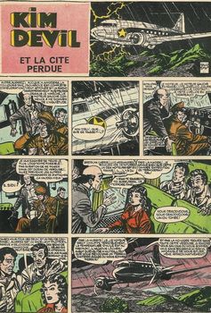 remarques: | tome 1 édition belge 1955, dos carré blanc imprimé, cahier agrafé (édition française = 1956, cahier cousu) les exploits de l'aventurier de brousse Kim Devil, l'explorateur à la pipe (p. 9/10) le prof. Sanders et sa fille Greta ainsi que leurs deux assistants (Luiz et Hernandez), à la recherche d'un explorateur disparu (Hunter), sont obligés d'atterrir en catastrophe dans la jungle brésilienne du Mato Grosso et sont capturés par les indiens jivaros, coupeurs de têtes Kim Devil et son assistant indien Ayomatuc partent à leur recherche et réussiront à les délivrer après réflexion, ils décident de repartir à la découverte de la ville inca d'Oyatlaxa, construite en pleine jungle amazonienne et découverte par Hunter qui perdit la vie durant son retour, mais aupraravant Kim et son équipe doivent se débarrasser de Luiz et Hernandez trop cupides pour ce genre d'expédition scientifique et Greta par sécurité n'y participera pas non plus ceux-ci jurent alors de se venger et parviennent à soudoyer les porteurs de l'expédition Sanders afin d'arriver les premiers à Oyatlaxa ils seront rattrapés grâce à l'avion du pilote Butch, Luiz et Hernandez réussissent toutefois à mettre le feu à l'avion, Kim et ses compagnons sont alors obligés de les prendre avec eux sur leur chemin vers Oyatlaxa >> p. 26 même dans le grand danger, Kim Devil n'oublie pas de fumer une bonne pipe n.b. les rééditions par les éditions Sangam (2010) côtent 50% des originaux >> un scénario classique d'aventure, mais bien raconté par Charlier, graphisme et coloriage sont particulièrement bien soignés, un album typique de la vieille garde de la bande dessinée annexes - Ier et 4ème plat de l'album - première planche de la série - réédition 2010, Ier et 4ème plat |