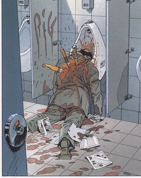 remarques: | le dernier album avec Van Hamme comme scénariste qui est déjà bien fatigué et qui arrête la série, voir information au tome 21 suite du tome précédent, on reprend les coucheries avec la jeune fille qui fait du chantage sur Cochrane, Pennywinkle qui se fait entourlouper par son soi-disant ami d'enfance, Draillac laisse tomber la présidence de la Winchair et Ovronnay doit convoyer la nouvelle présidente de la Merchant Fleet: Hanni Veenstra, une femme-commandant en dehors des normes qui sera dorlotée par le chauffeur noir Jeffries >> p. 18 le club Crazy Duck >> p. 31 Pennywinkle qui perd son sang-froid et monte sur ses grands chevaux le but des terroristes, c'est de faire exploser la salle de conférence où se tiendra le big board du groupe Winch, l'attentat échouera grâce à la dénonciation de Saïdée, l'amourette de Largo et grâce à l'action énergique du commandant Hanni Veenstra tous les vilains seront éliminés sauf Igor Maliakov qui prépare déjà son prochain coup alors que Saïdée sera malgré tout arrêtée et mise en prison malgré l'intervention de Largo Winch (et afin de rendre Largo libre de ses actes, Saîdée se suicidera en prison >> voir album 21) >> un texte plutôt pitoyable avec de nombreuses coucheries, partouzes à gogo, etc le tout avec un Largo Winch pour une fois désorienté par une petite islamiste - scénarisé par Van Hamme qui cette fois est vraiment fatigué alors que le graphisme de Francq reste respectable et qui continuera la série avec le scénariste Giacometti annexes - couverture de l'album - le club Crazy Duck - un meurtre pas très propre Information (petite critique) déjà vingt tomes d’aventures de l’élégant milliardaire qui nous ferait presque aimer la finance mondiale, soit dix diptyques qui collent le plus souvent à l’actualité immédiate, en choisissant le terrorisme salafiste, même comme écran de malversations économiques, Jean Van Hamme ne s’est pas trompé, malheureusement, cette sortie en novembre est donc réellement aux prises avec une actualité abominable, heureusement, comme à chaque fois, Largo s’en sort bien, avec un album aux allures de classique du genre côté graphique, comme d’habitude, Philippe Francq s’étalonne à Londres avec talent: les lieux publics, les bâtiments et rues sont toujours soignés, avec une impression de vérité, rien à redire, le style est toujours là, même si certains personnages annexes commencent peu à peu à tomber dans la caricature, dont la nouvelle postulante de chef de la division merchant fleet, sorte de Brienne de Torth (de la série Game of Thrones) achève de mettre du piment chez les les proches de Largo Winch, surtout quand Dwight Cochrane et Miss Pennywlike prennent de plus en plus de libertés il faut le dire, ce nouvel opus ressemble tout de même à une suite de coucheries parfois loufoques, parfois importantes pour l’histoire et souvent inutiles, Simon reste Simon, les autres semblent s’encanailler de plus en plus (à l’exception de Largo, qui on nous le rappelle toutes les deux pages), est en train de tomber "vraiment amoureux", ce qui ne sera plus le cas dans le prochain 21ème album en préparation |