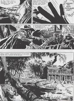 remarques: | deuxième album (2001) édité par Milwaukee Editions mentionnant Jose Larraz et non plus Gil qui effectue cette fois scénario et graphisme en début d'album , petite introduction sur Paul Foran par Philippe Terral aventures policières avec espionnage sur le vol de documents militaires >> un album peu satisfaisant avec un graphisme N&B et un scenario peu convaincant annexes - couverture no 5 Milwaukee Editions - extrait de page N&B - couverture no 6 Bibliothica Virtualis - extrait de page no 6 couleur Information a) il existe une édition pirate (Bibliothica Virtualis) avec des épisodes inédits en albums, mais publiés dans Spirou (1969-1979), six volumes (2012) tous en couleur: 5/ le gang des vampires, 6/ l'habitant du moulin 7/ les démons de la jungle, 8/ baroud dans l'île 9/ le retour de Ling-Hur, 10/ le repaire de la mort lente b) reprise de la série par Milwaukee Editions (2001-2013) mais en quadrichromie sauf pour le gang des vampires en noir&blanc avec les mêmes titres que Bibliothica Virtualis |